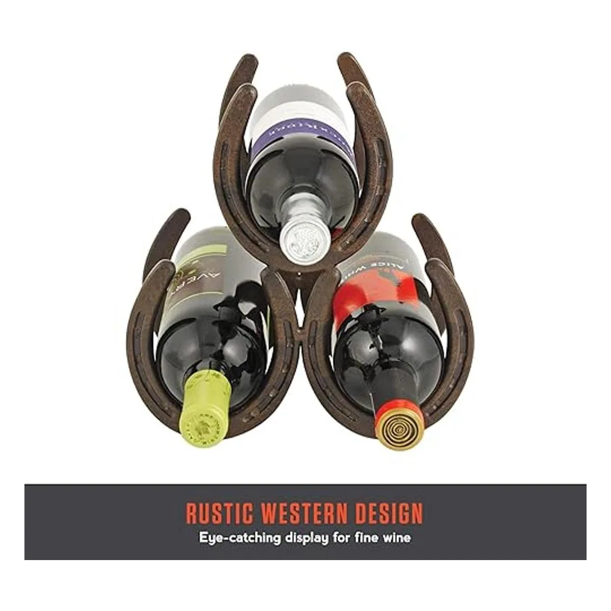 Conveniente decoración para encimera: añade un toque de granja a tu cocina o bar de casa. Este soporte para botellas de vino en forma de herradura encaja perfectamente en mesas, bares, encimeras o carritos de bar, y tiene capacidad para 3 botellas de vino estándar. Ideal para licor, cerveza o cócteles.
