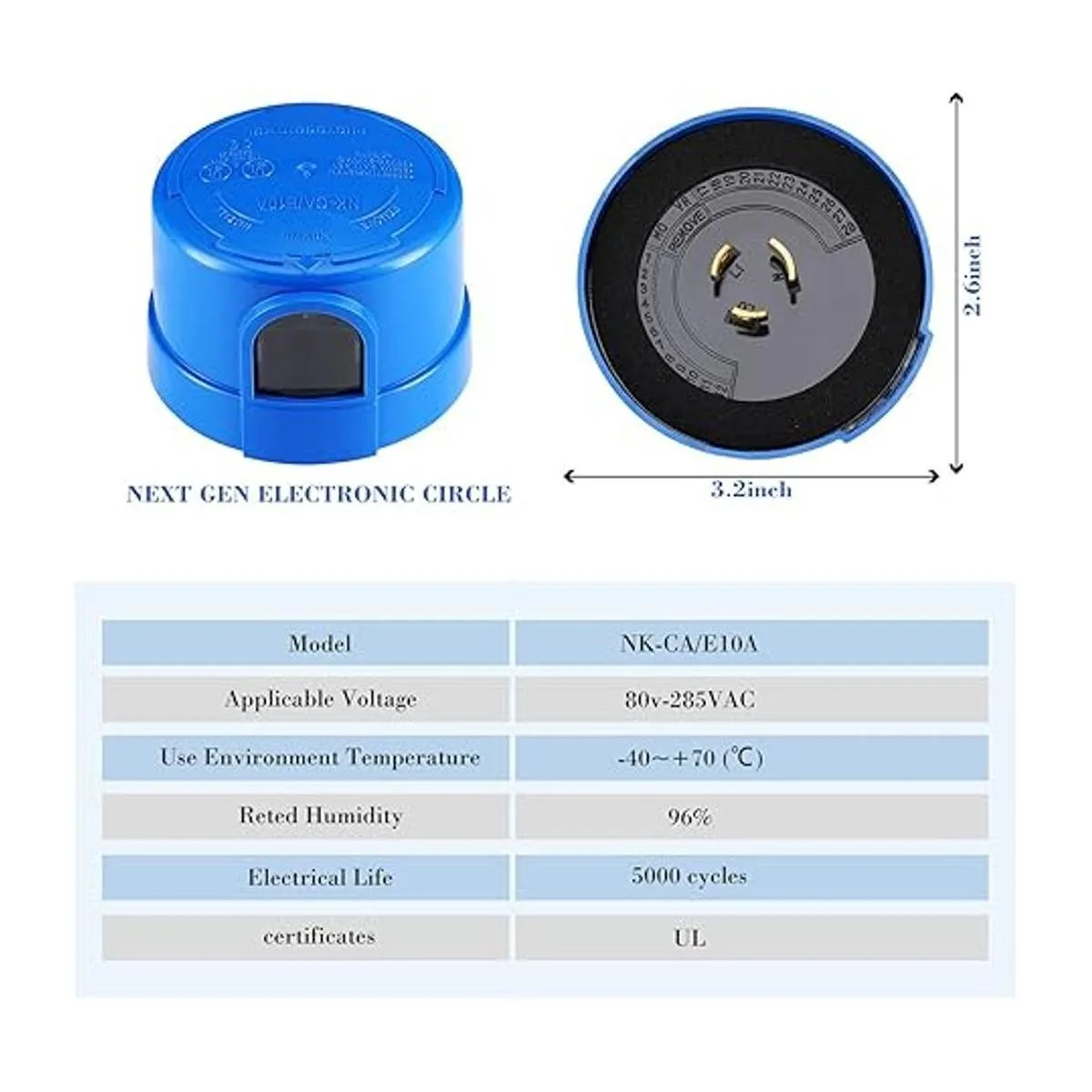 Encendido y apagado automático: el interior del sensor de luz de fotocélula está equipado con un circuito de detección de iluminación automática, por lo que se puede apagar automáticamente durante el día y encender por la noche, ahorrando tiempo y esfuerzo; la carcasa de material de calidad evita la corrosión interna o daños por el agua u otras cosas, asegurando un uso a largo plazo