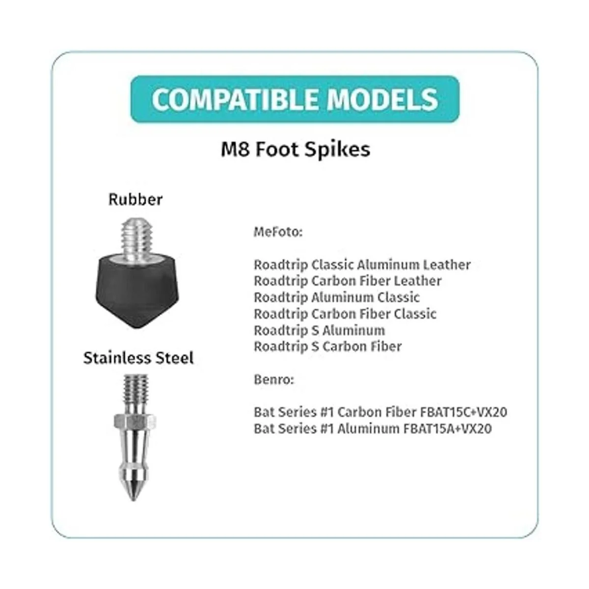 Los picos universales de acero inoxidable están diseñados para proporcionar estabilidad adicional del trípode para el soporte de tu cámara mientras disparas en superficies difíciles.