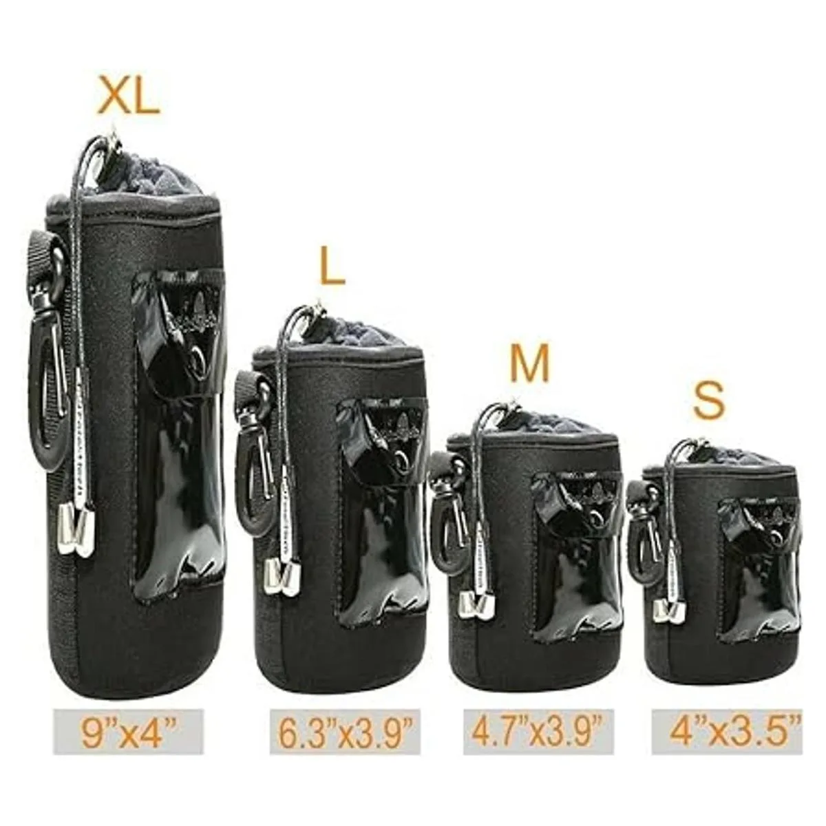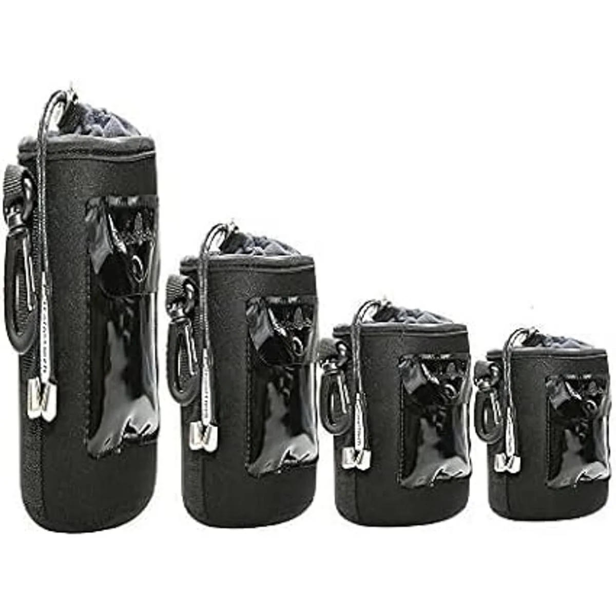 FotoTech 4 piezas de 0.197 in extra gruesa impermeable para lentes de neopreno y collar de franela con cordón ajustable y clip giratorio compatible con cámaras Canon Nikon Sony Olympus S, M, L, XL