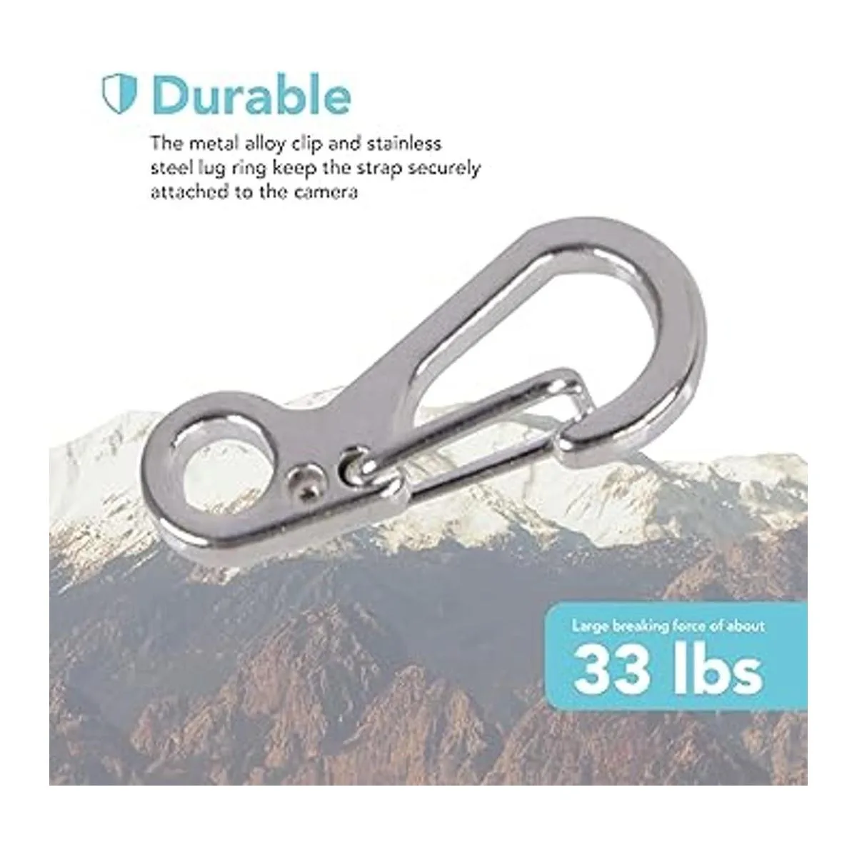 Duradero: el clip de liberación rápida está hecho de aleación y el anillo de liberación rápida está hecho de acero inoxidable. Juntos tienen una fuerza de rotura de hasta 33 libras