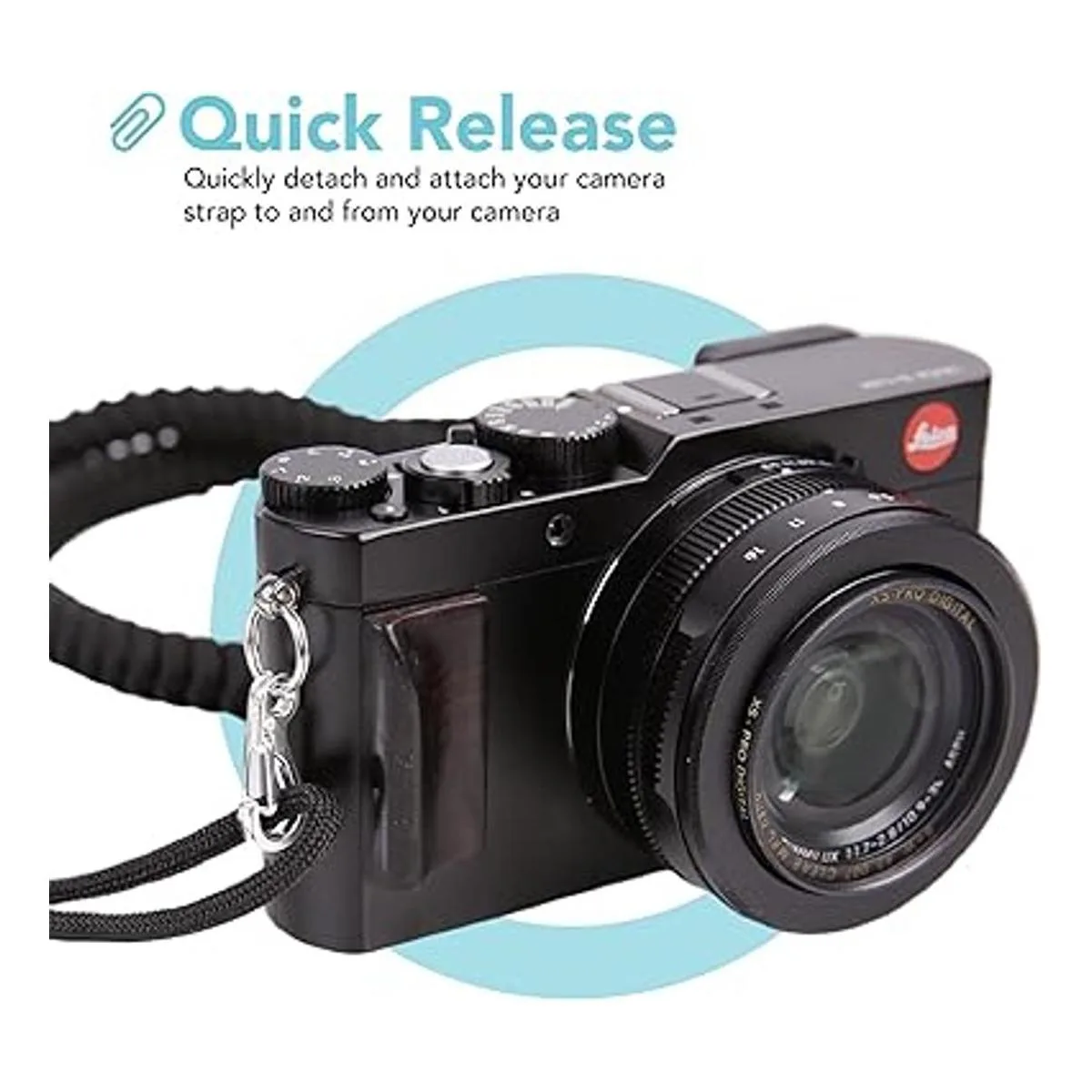 Fácil instalación: fija el anillo de lengeta a la correa de tu cámara o cámara y haz clic en el clip en su lugar.