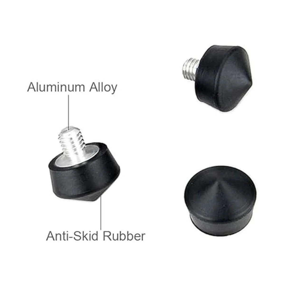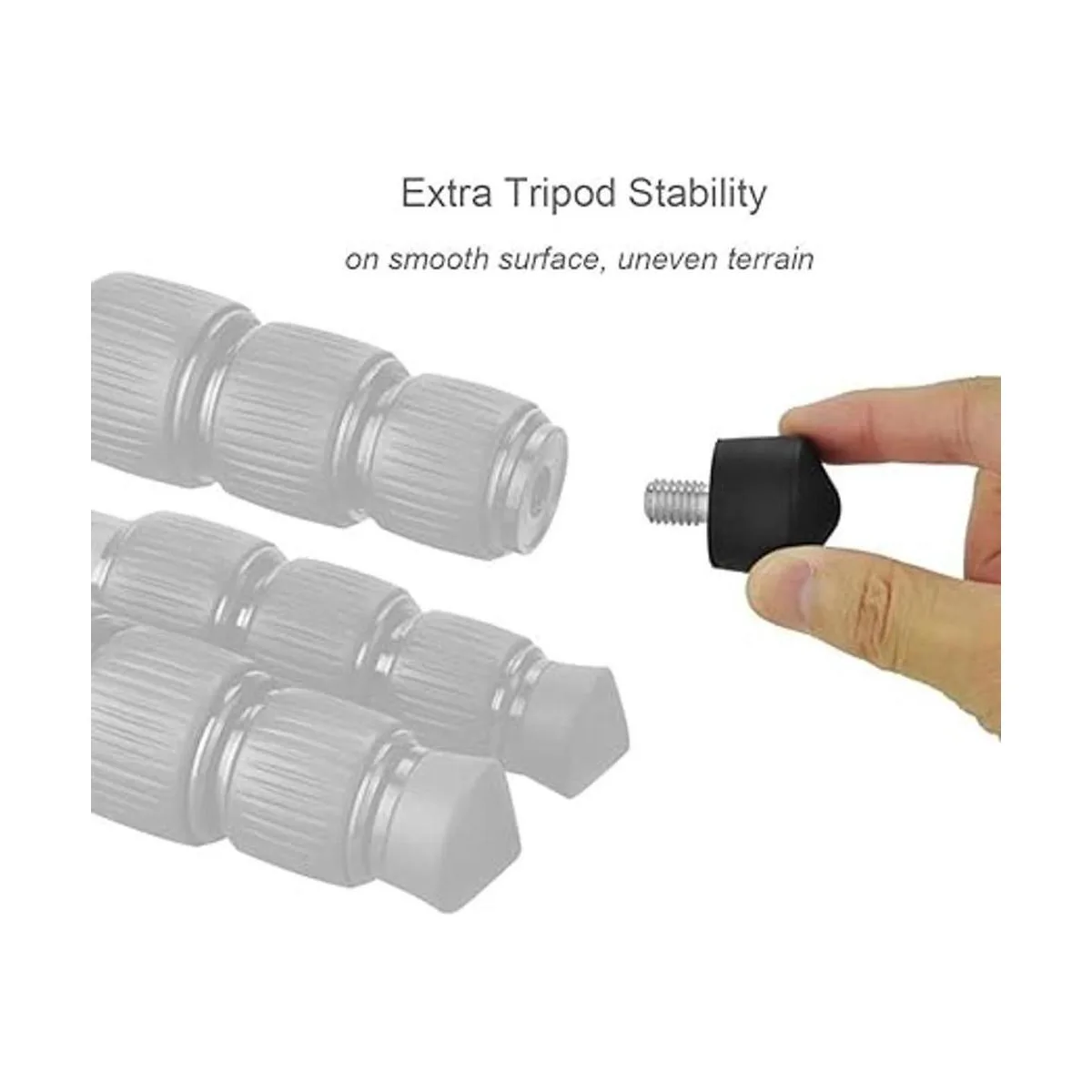 Los tacos de goma antideslizantes universales están diseñados para evitar que el trípode se deslice en superficies lisas mientras que proporciona estabilidad adicional en terrenos irregulares.
