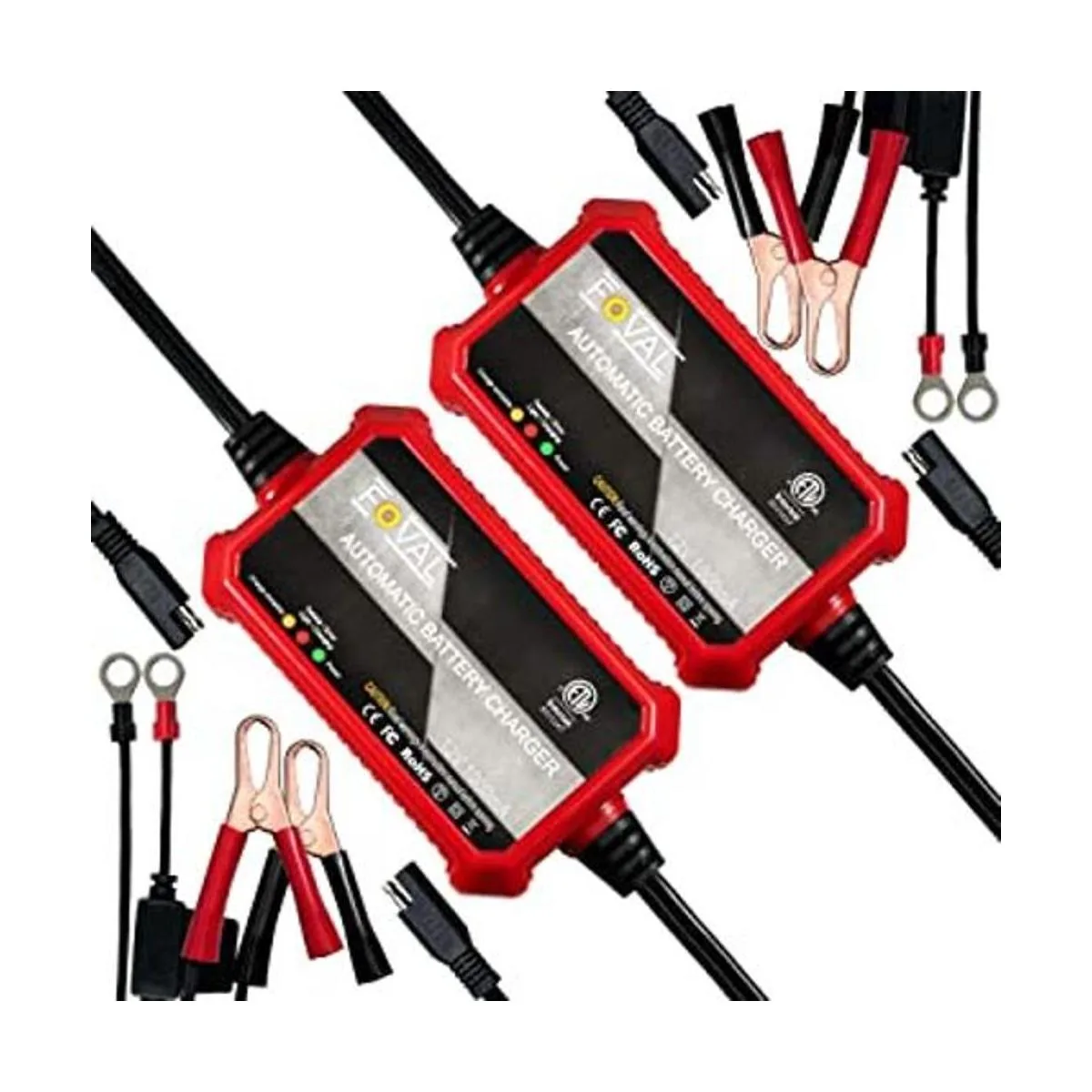 Foval Cargador de batería de goteo automático, 12 V, 1000 mA, cargador de batería inteligente paquete de 2