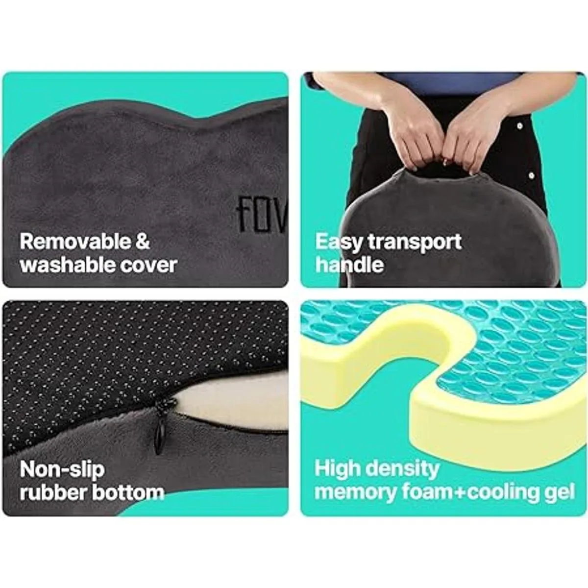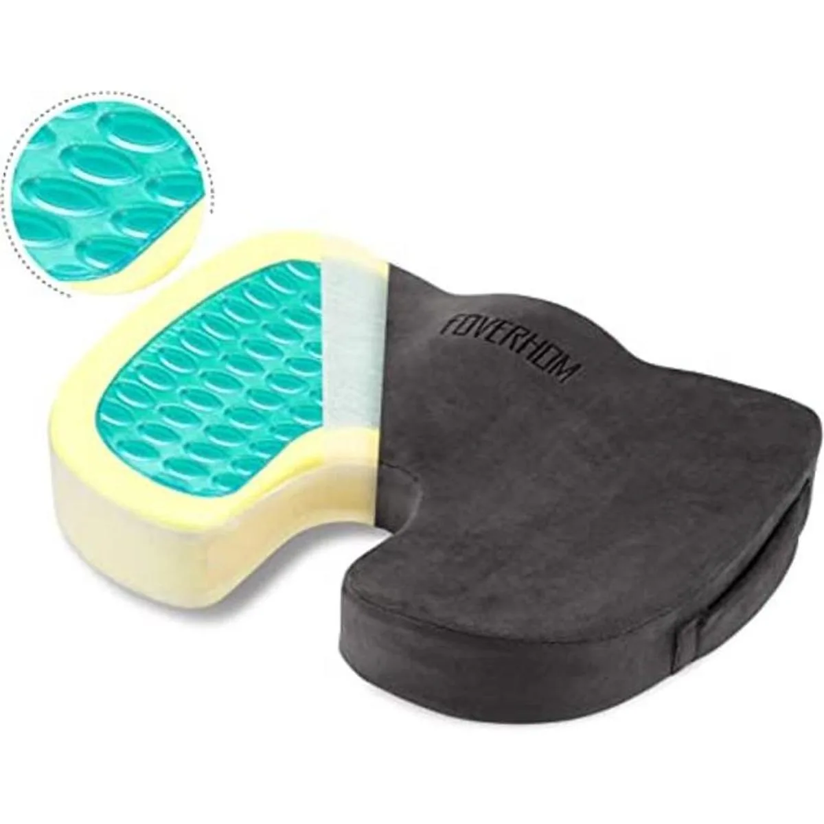 Foverhom Cojín de asiento de gel para sentarse durante mucho tiempo, cojín de asiento de silla de oficina para aliviar el dolor de coxis, antideslizante, ortopédico de 50 densidad, de rebote lento, cojín de asiento de coche con asa y cremallera oculta
