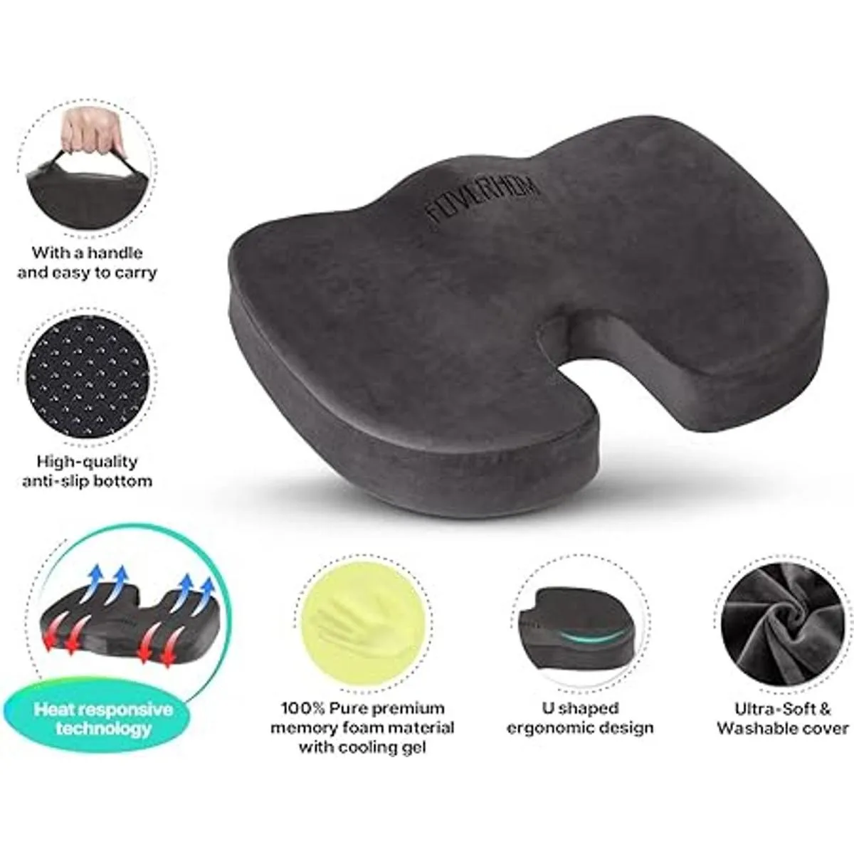 Multiusos: cojín de asiento de espuma viscoelástica para el hogar, silla de oficina, silla de ruedas, coche o avión. Las personas con hemorroides no dañarán al sentarse. El cojín de asiento de alivio de presión Foverhom es el regalo perfecto para el conductor del asiento del coche.