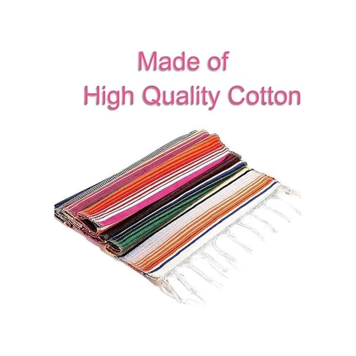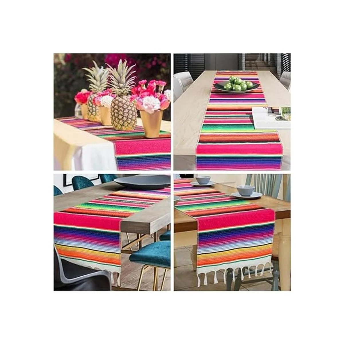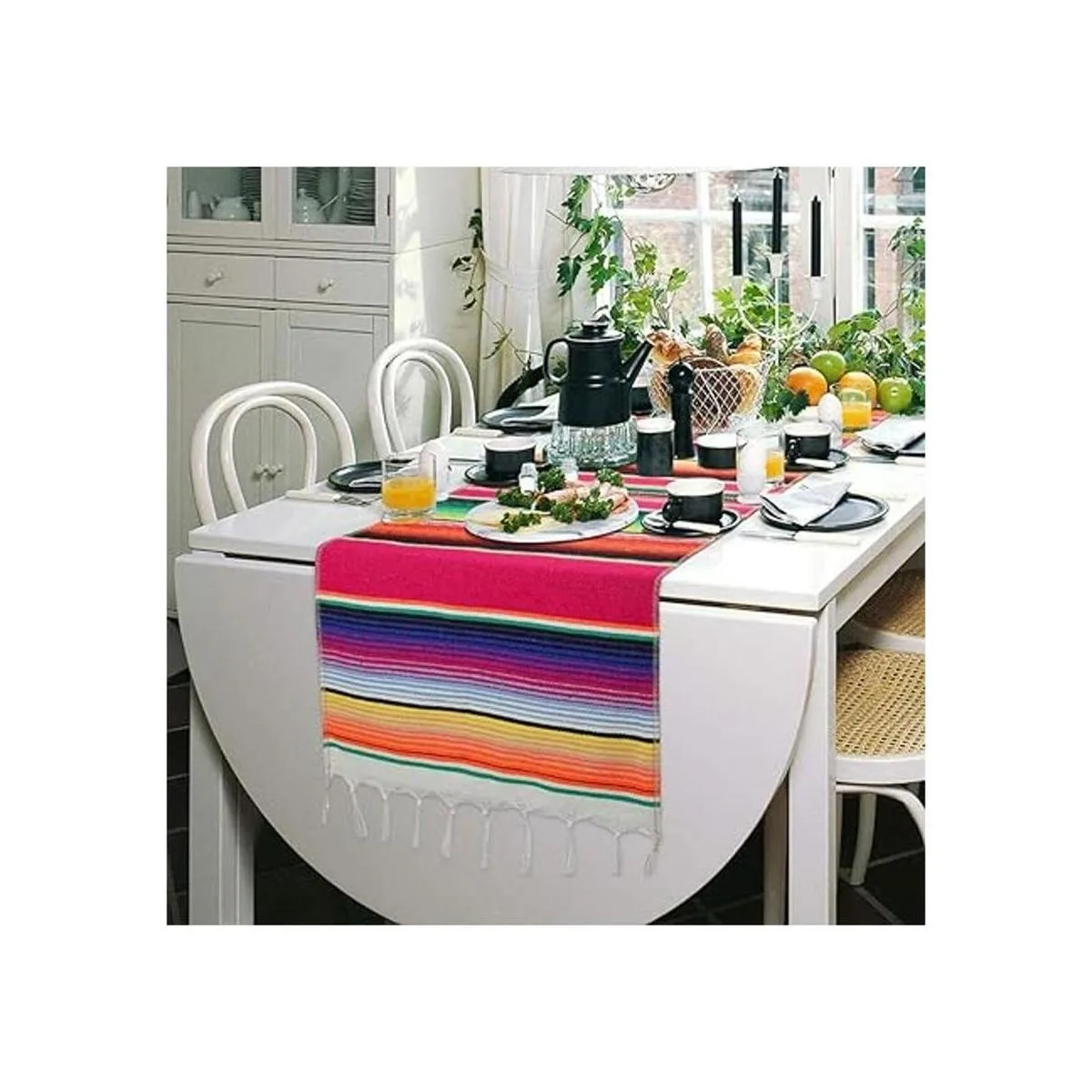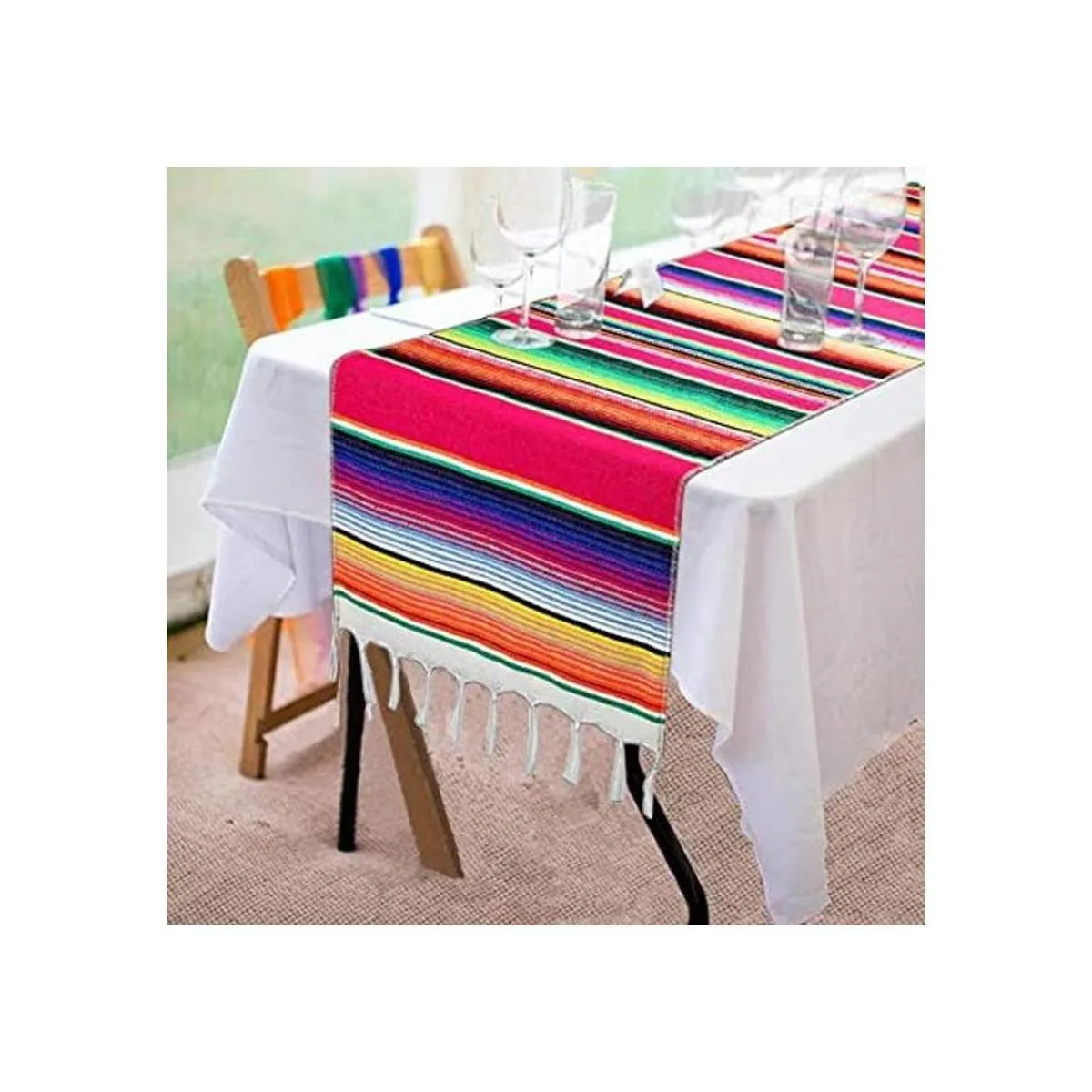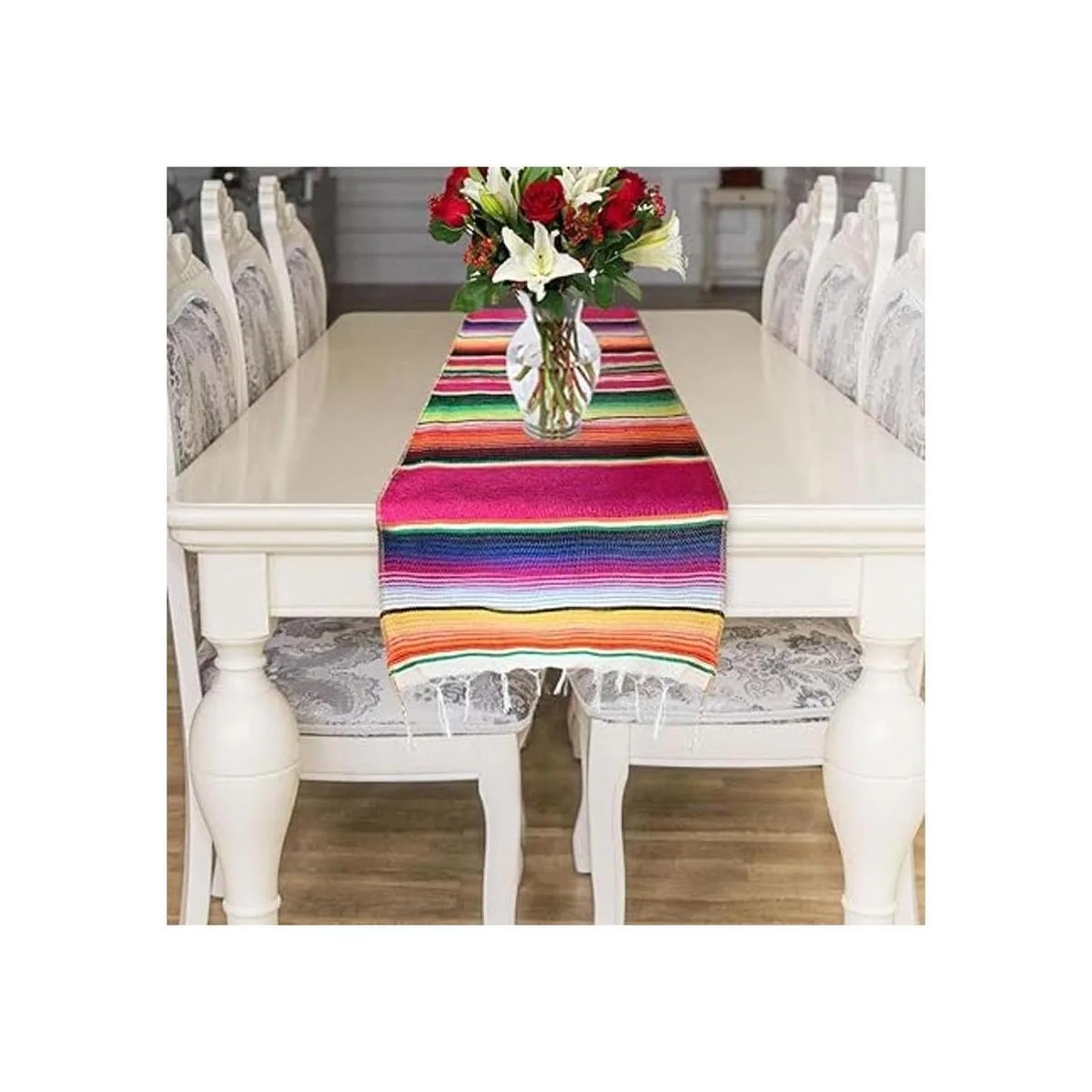 Fowecelt Camino de mesa de sarape mexicano de 14 x 80 pulgadas, manta tejida a mano, camino de mesa mexicano de rayas coloridas, decoraciones de boda, para fiestas mexicanas, camino de mesa de algodón con flecos