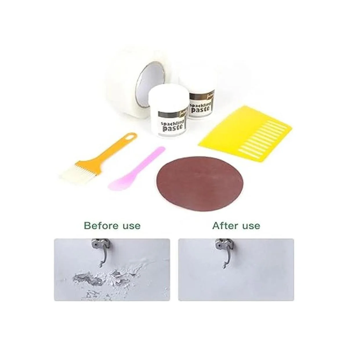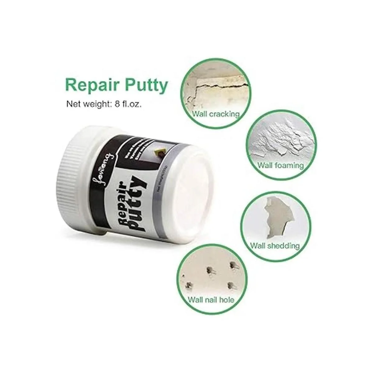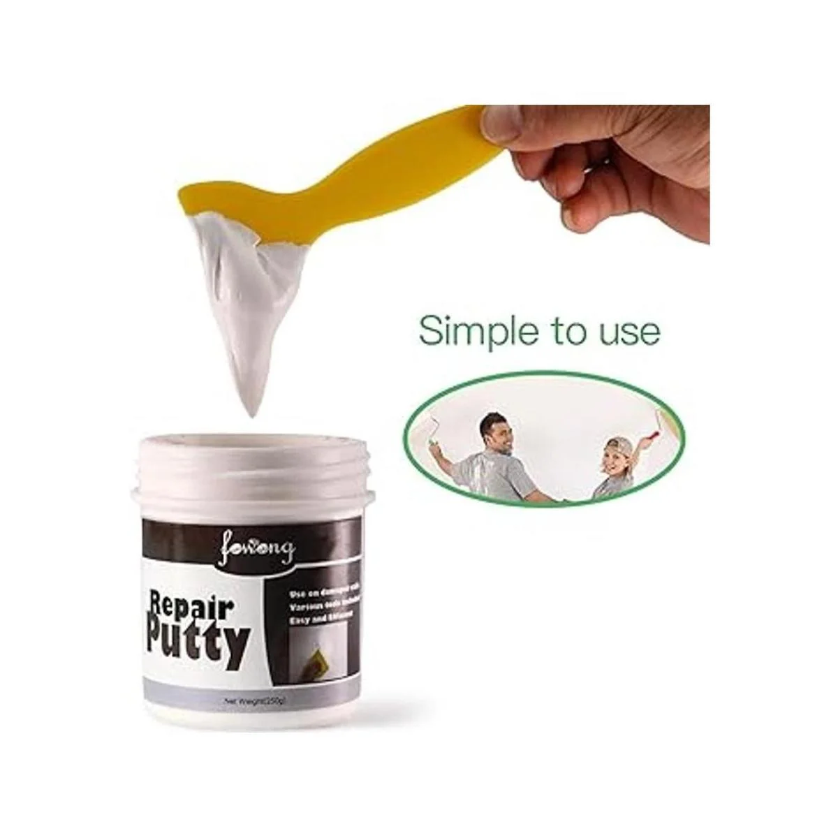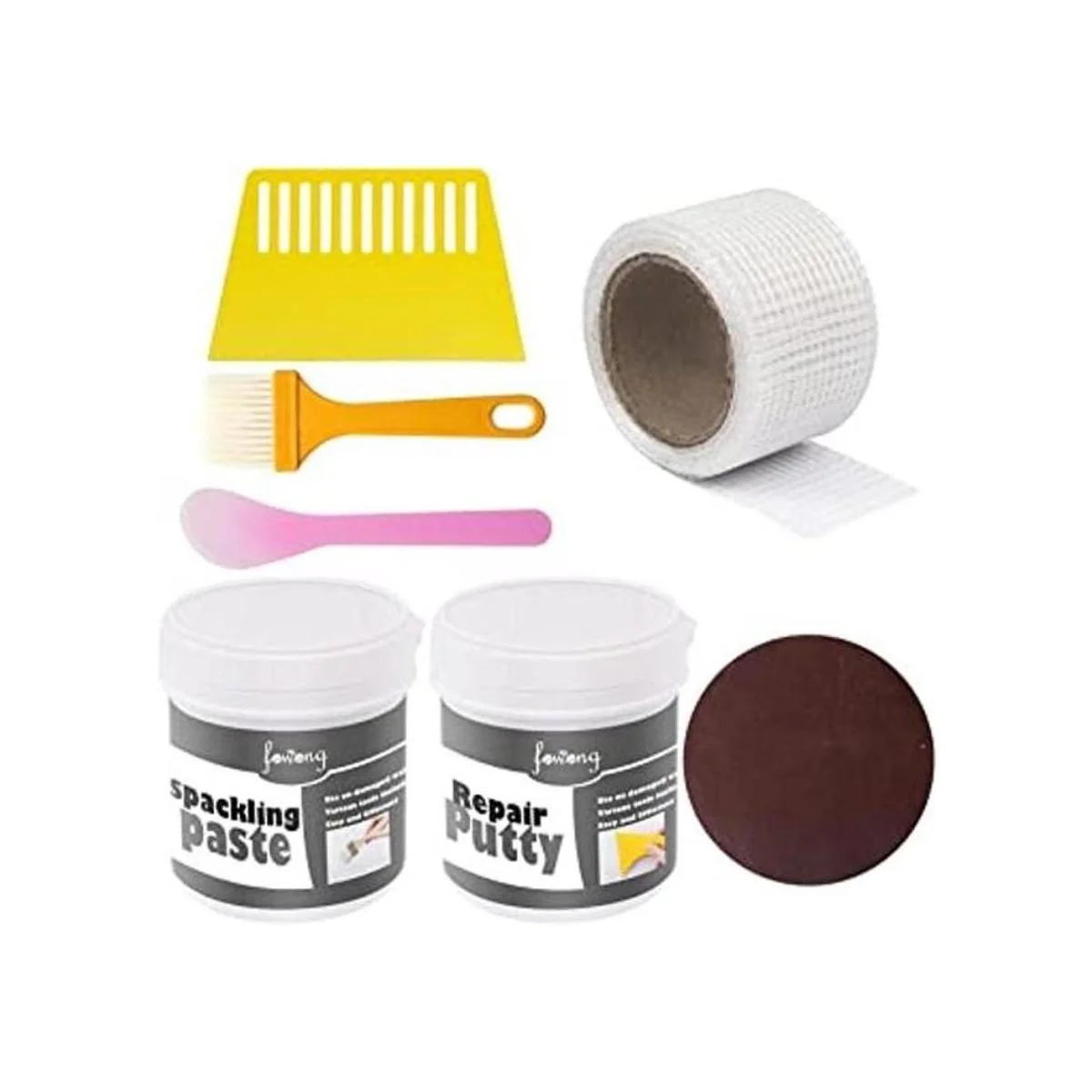 fowong Kit de parches de reparación de pared de masilla y pintura blanca, kit de reparación de parches de yeso para fijar agujeros de pared y daños de grietas con cuchillo de masilla y almohadilla de lijado