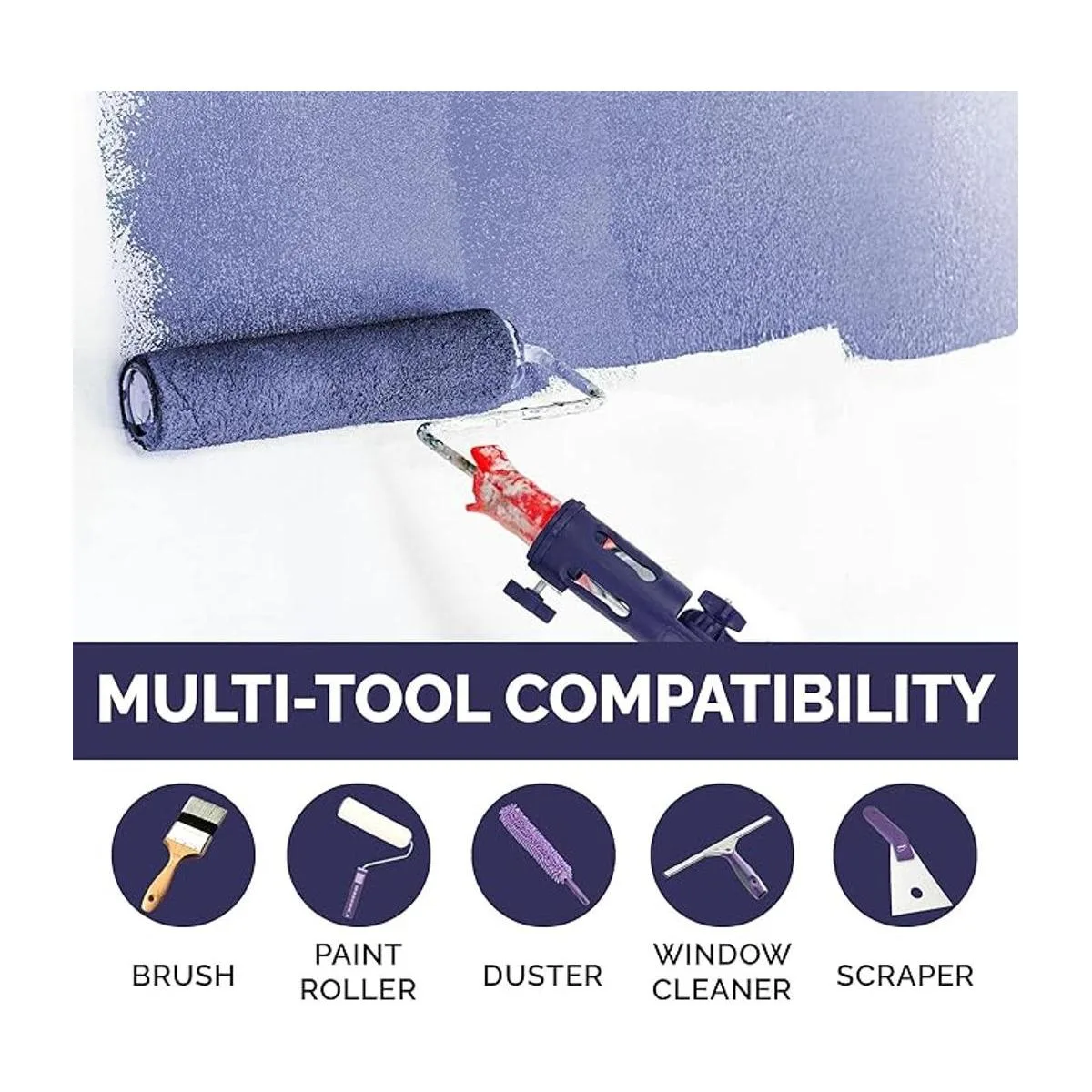 Foxtrot Extensor de pincel multiangular, soporte de poste de extensión para pincel, rodillo, raspador, cabezal giratorio, agarre seguro de mango alcanza fácilmente techos, paredes, bordes de esquina, color azul
