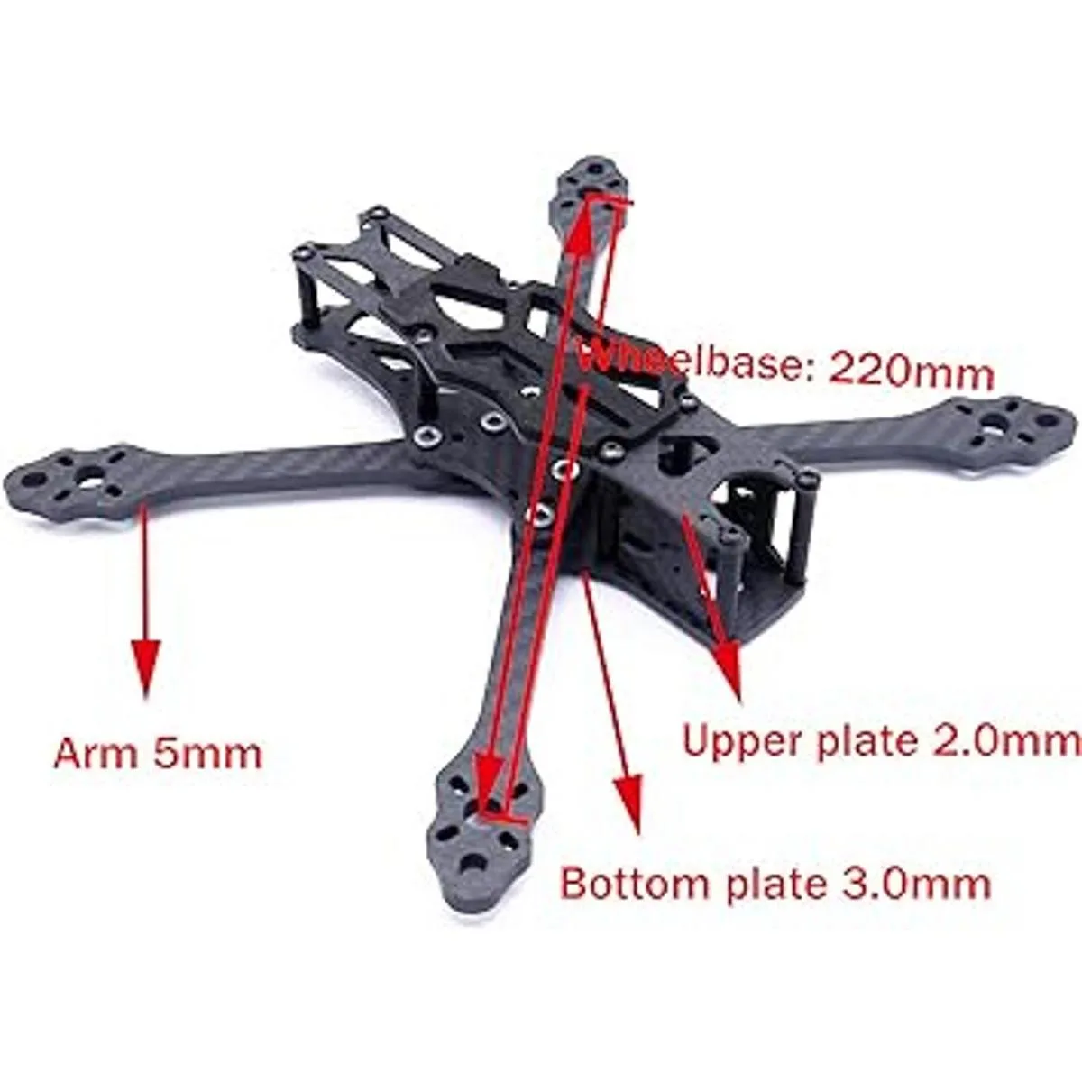 FPVDrone Marco de dron FPV Racing de 8.661 in, marco de fibra de carbono de 5 pulgadas, kit de marco de cuadricóptero compatible con unidad de aire DJI