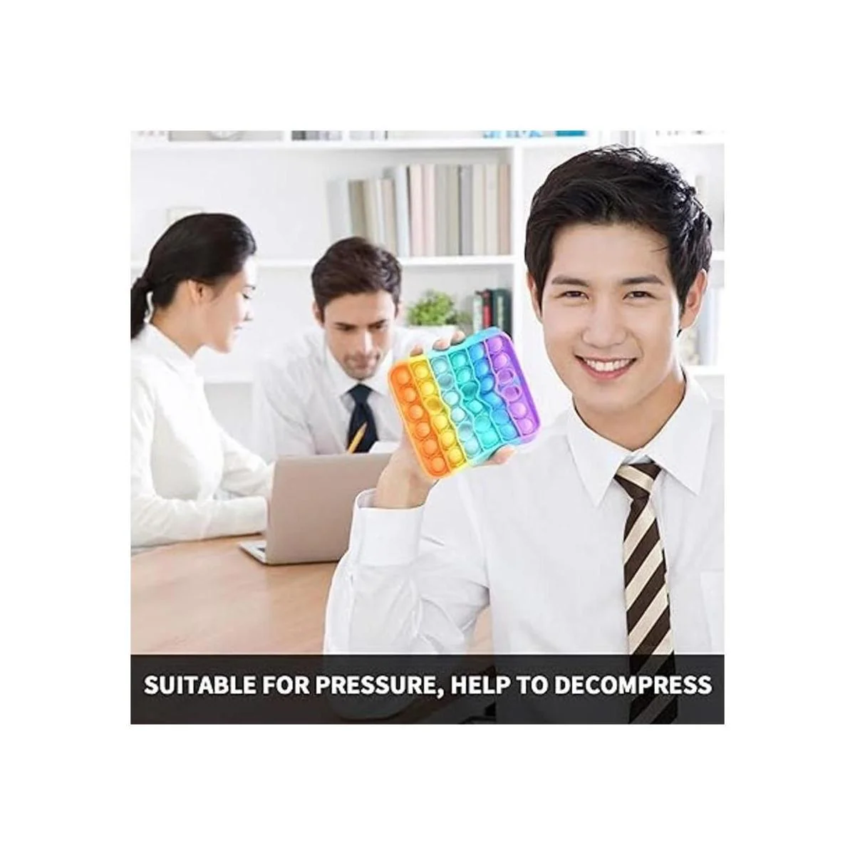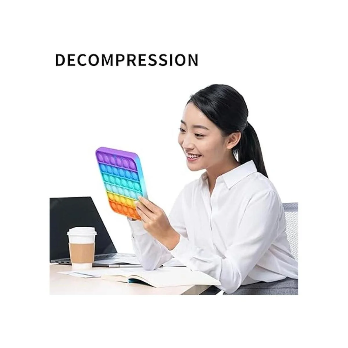 Cómo jugar: Presiona las burbujas de una línea. El que presiona la última burbuja pierde. O simplemente dóblalo, estrújalo y aprétalo. Te ayuda a ti y a tus hijos a reducir la ansiedad y la presión, como también a construir estabilidad emocional.