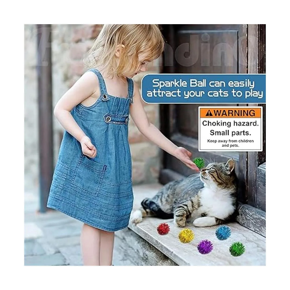 Material: bolas brillantes para gatos hechas de hilo tejido apretado mezclado con espumillón brillante, duraderas y seguras de usar.