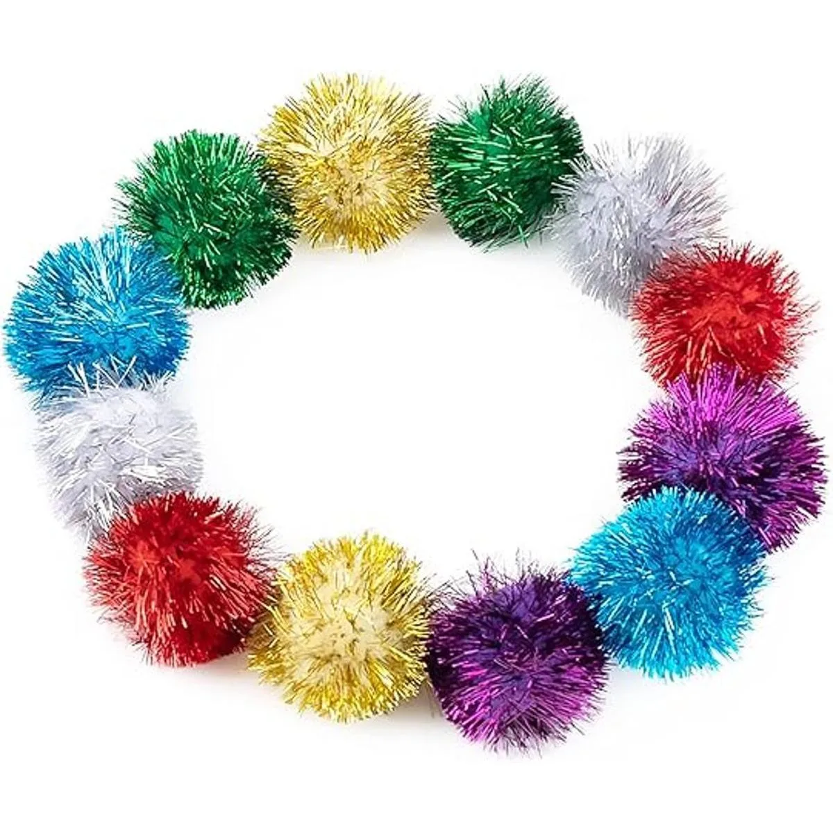 Tamaño: las bolas de pompón brillantes de gato miden aproximadamente 2.0 in de diámetro, tamaño pequeño y ligero, fácil de jugar para el gato.