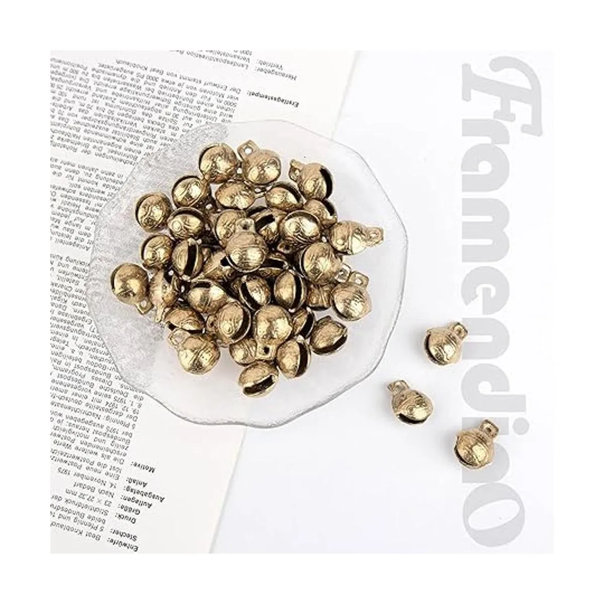 Framendino, Paquete de 60 campanas de latón tibetano vintage, mini dijes de campana para manualidades para hacer joyas de bricolaje