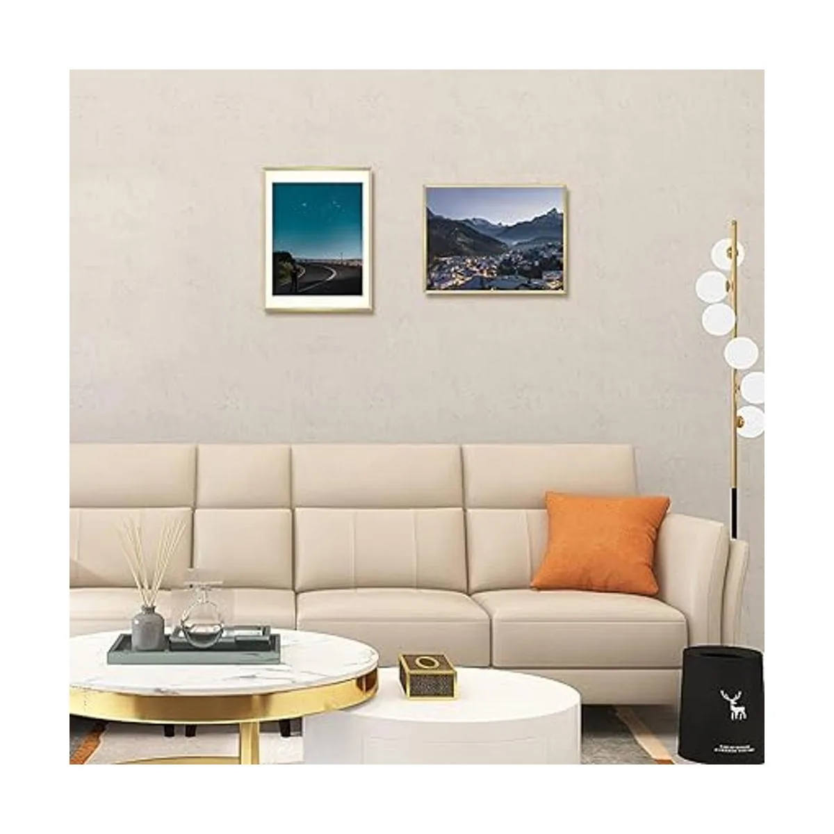 Diseño moderno: el marco de aluminio dorado viene con una alfombrilla de color marfil extraíble.