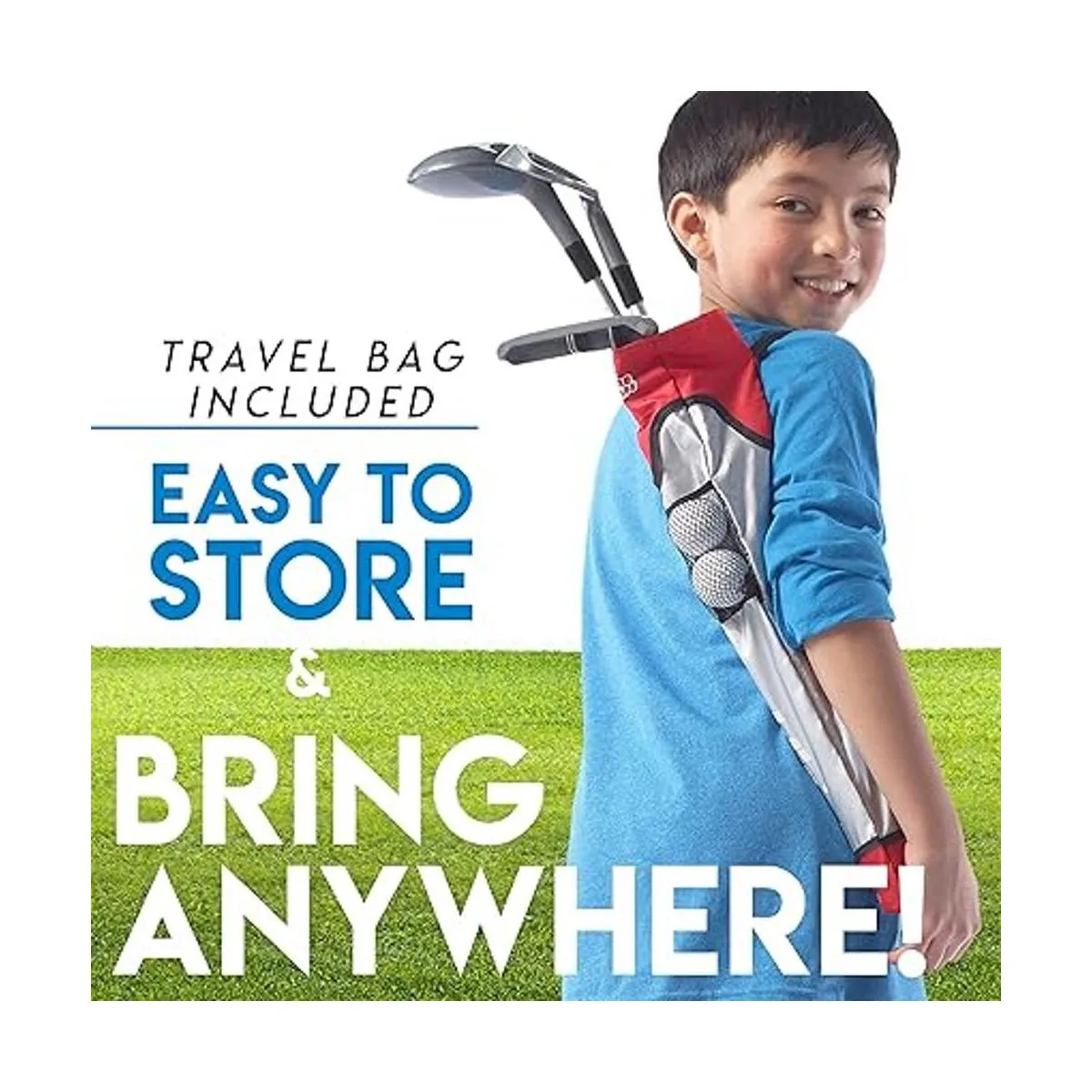 STORAGE AND PORTABILITY: Each set comes with a travel bag that features storage pockets for golf balls and tees, AND a shoulder strap for kids that are taking their set on the road