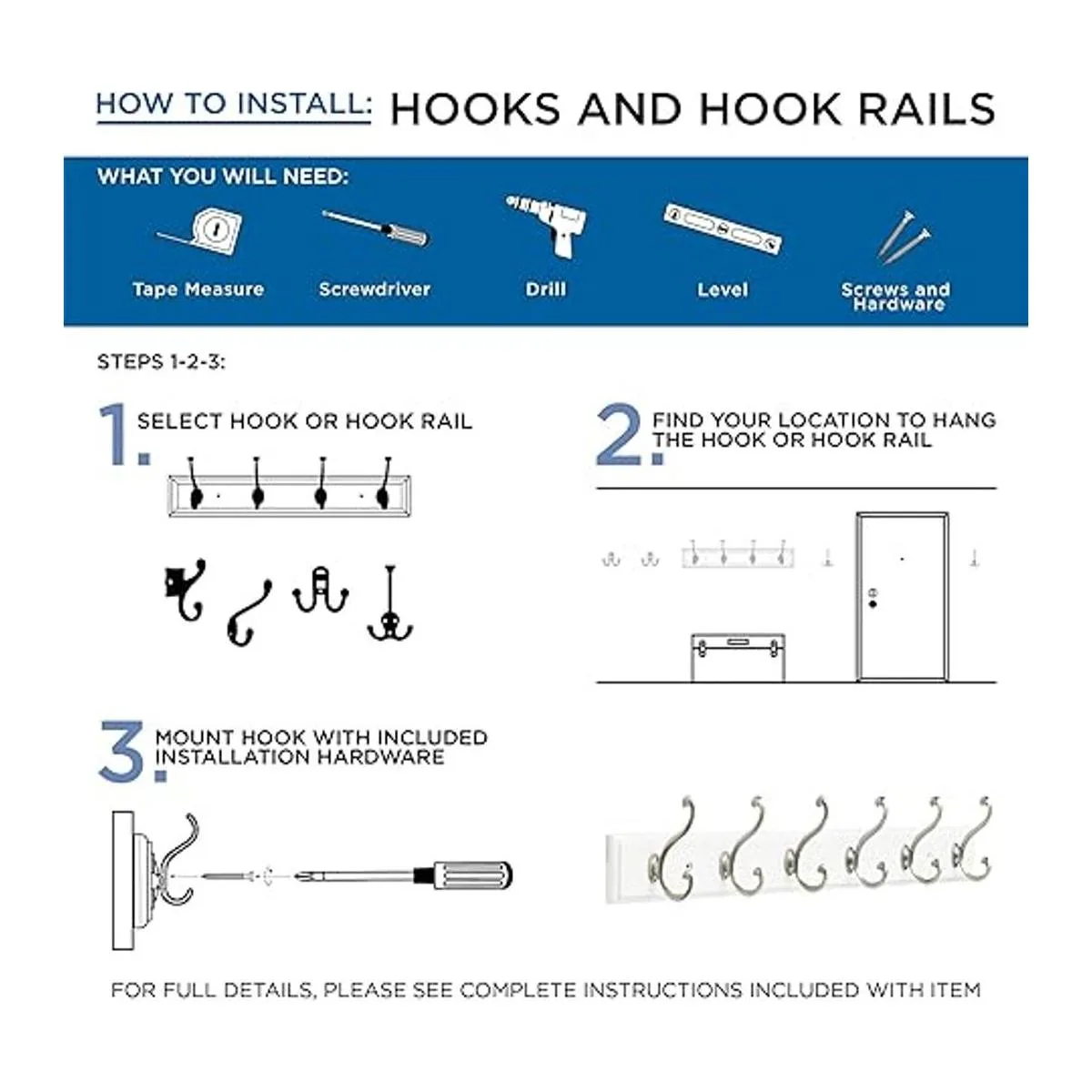 Franklin Brass Ganchos de pared resistentes para perchero y sombrero, 6 ganchos, 27 pulgadas, blancoblanco, RPLR6DJPWWL1