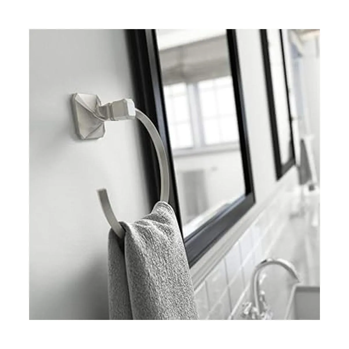 El anillo de toalla sostiene una toalla de mano para una fácil accesibilidad desde el fregadero