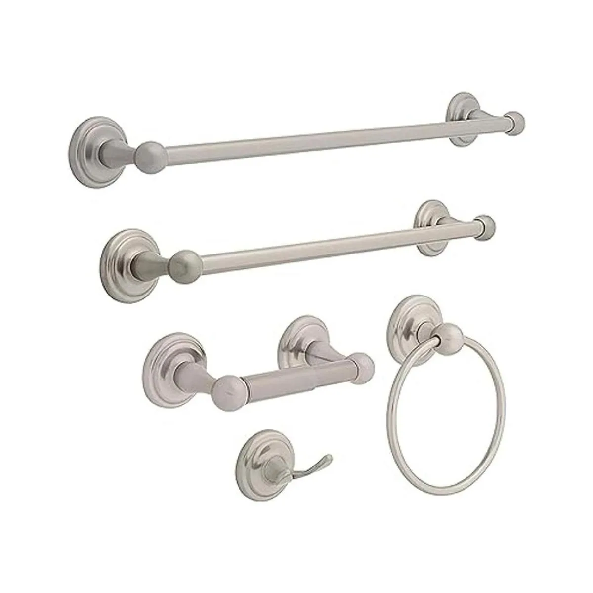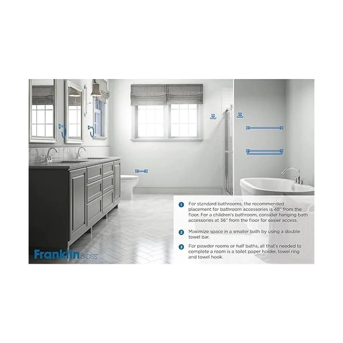 Jamestown, una colección de moda Franklin Brass, con estilo sin esfuerzo y belleza clásica, ayudará a revitalizar tus accesorios de baño con barras de toalla de 45,7 y 24.0 in, gancho doble para bata, anillo de toalla y opciones de soporte para papel higiénico