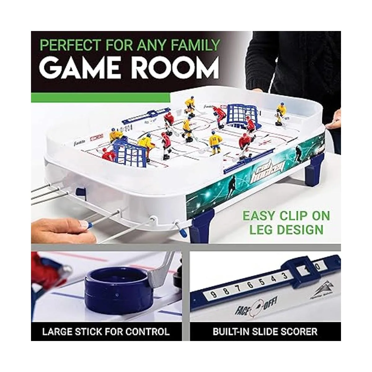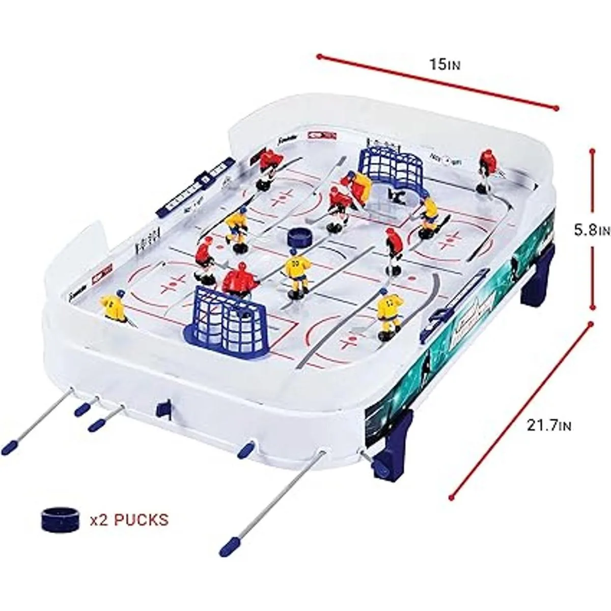 Franklin Sports Juego de hockey de caña de mesa, juguete de hockey perfecto juego de sala de juegos para niños familia, mini tabla de hockey de caña de mesa discos incluidos