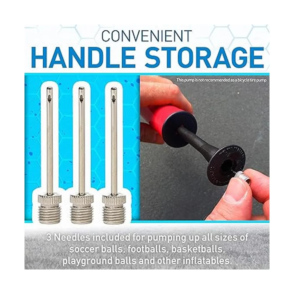 3 agujas incluidas: incluye 3 diferentes tamaños de agujas para inflar balones de fútbol, fútbol americano, baloncesto, y otros tipos de balones. Este inflador no se recomienda como un inflador de neumáticos de bicicleta.