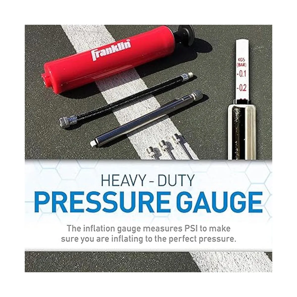 Franklin Sports Kit de mantenimiento de balón inflador, agujas y medidor de presión inflador para balones de fútbol, baloncesto, voleibol y fútbol americano, inflador de balones de línea de banda, kit completo