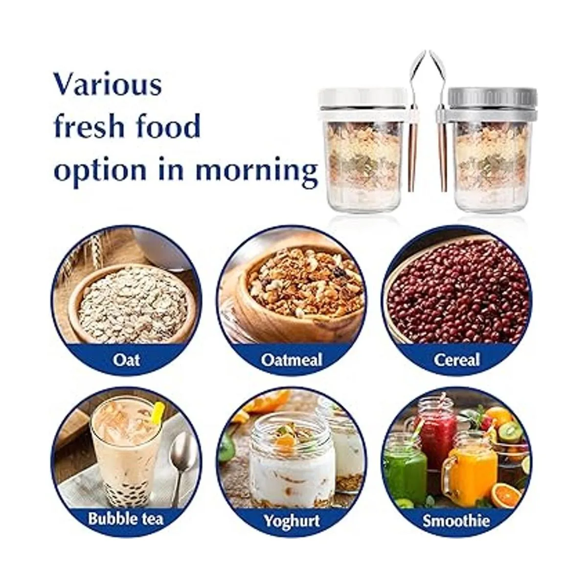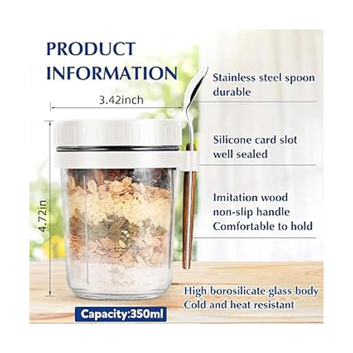 Diseño único: la taza de avena durante la noche viene con un anillo colgante de silicona y cuchara de acero inoxidable, se puede llevar, es muy conveniente, es un buen ayudante para tu viaje en casa, el diámetro ancho es fácil de limpiar.