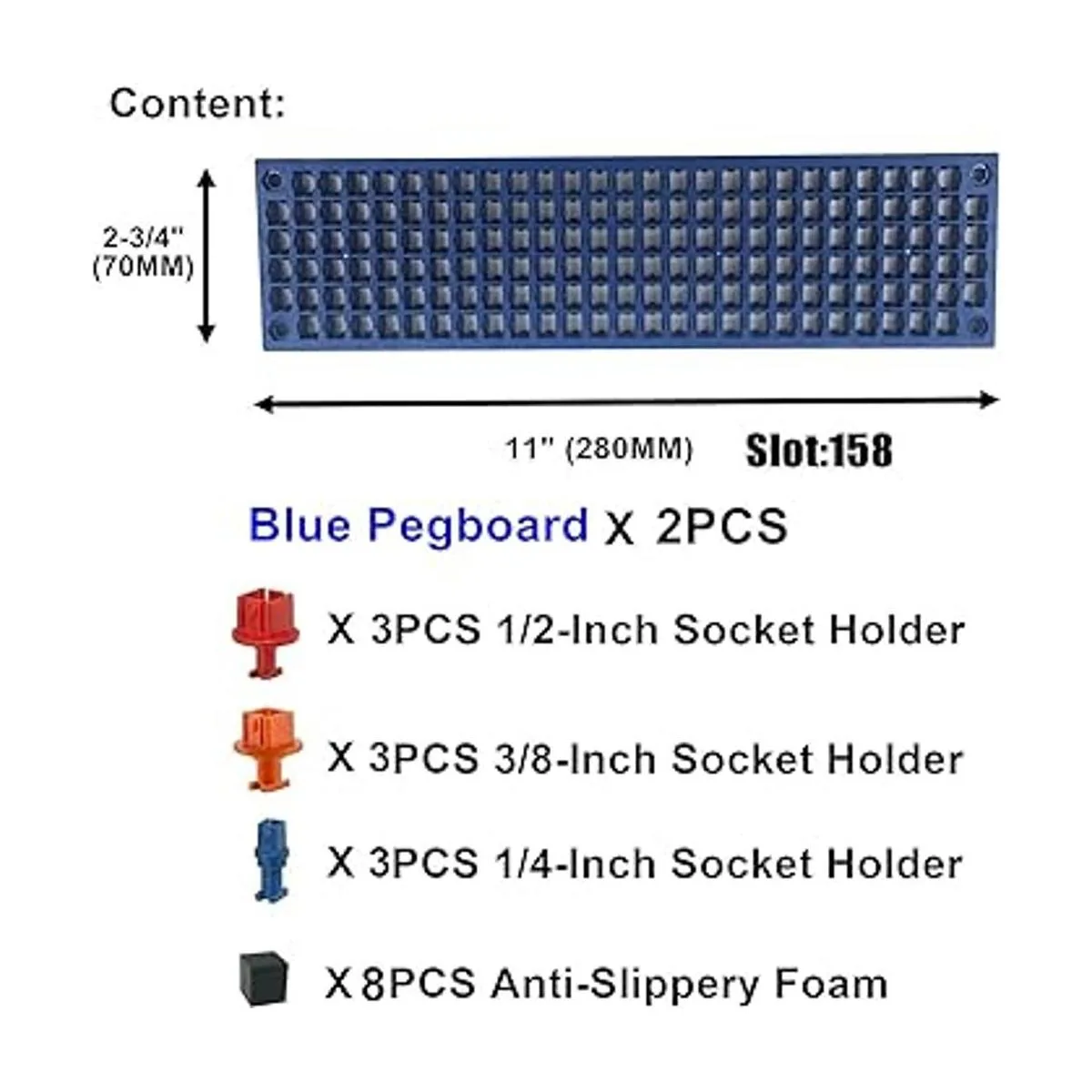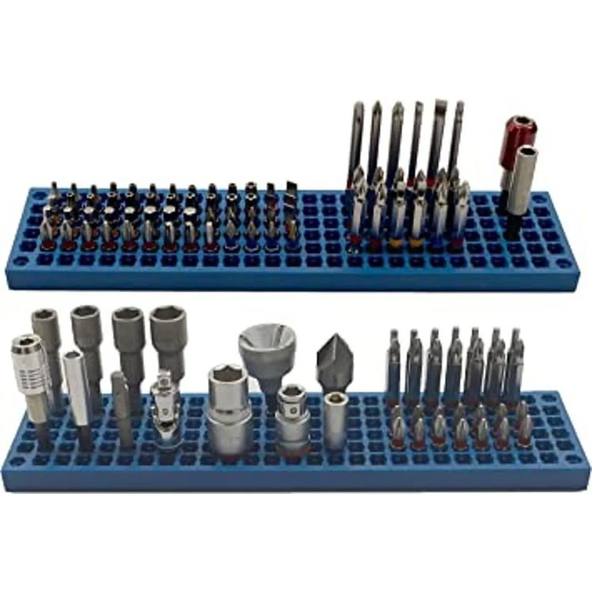 FREE ZONE Juego organizador de brocas azul Almacenamiento de brocas de 200 agujeros Almacenamiento de adaptador de brocas hexagonales de 14 pulgadas Organizador de brocas de destornillador Organizador de caja de herramientas