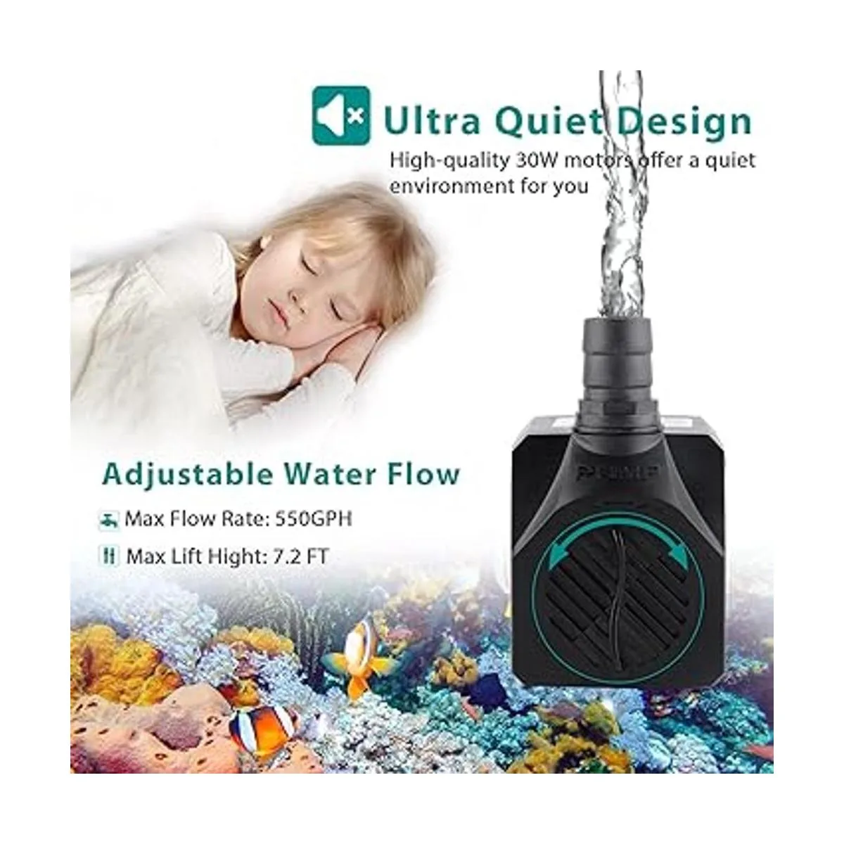 Múltiples ocasiones: adecuado para entornos donde la temperatura del agua no exceda los 95.0 F. La bomba de ahorro de energía de alto rendimiento puede circular tu acuario y drenar el agua. Es una buena opción para usar en acuarios de agua salada, estanques, tanque de tortuga, fuentes, cascadas, sistemas hidropónicos y características de agua