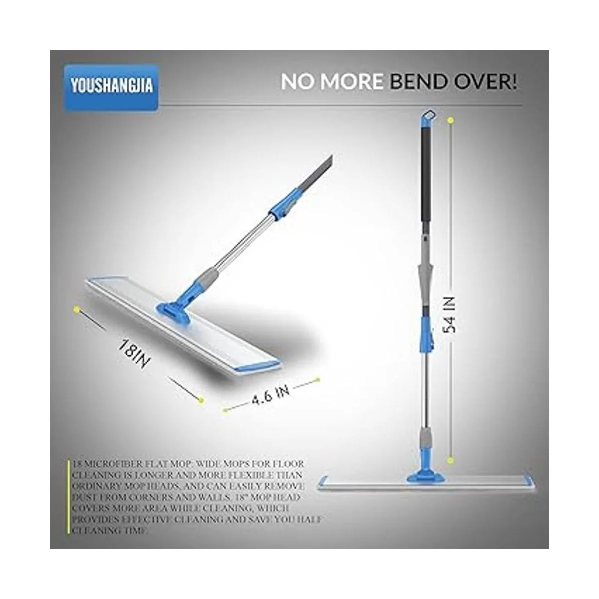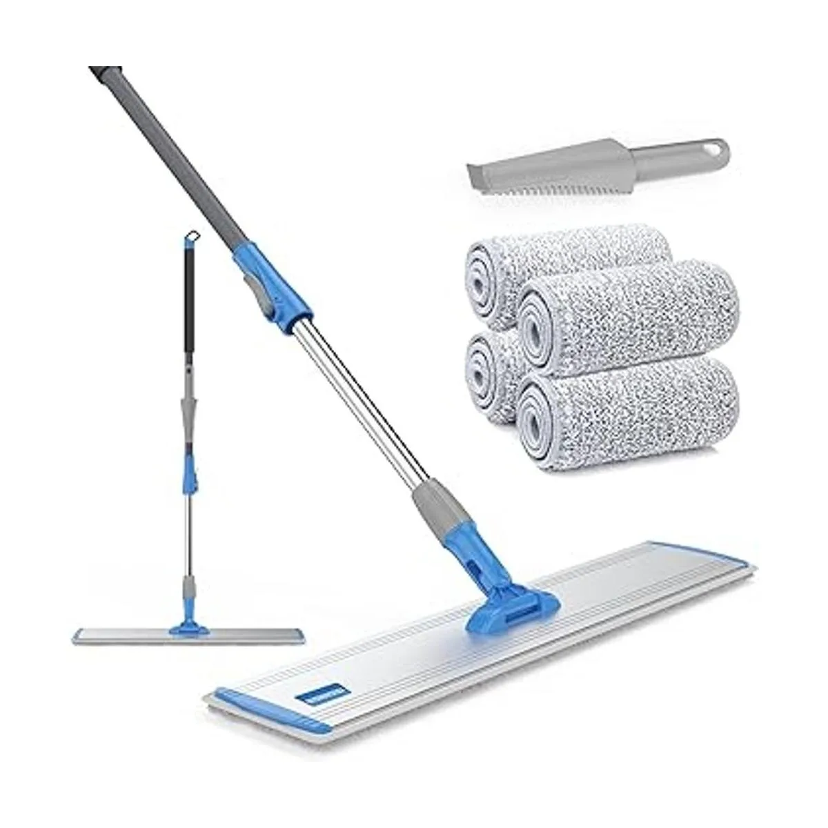 Fregona de microfibra grande de 18 pulgadas para limpieza de pisos, 4 almohadillas de madera dura para limpiar trapeadores húmedos o secos