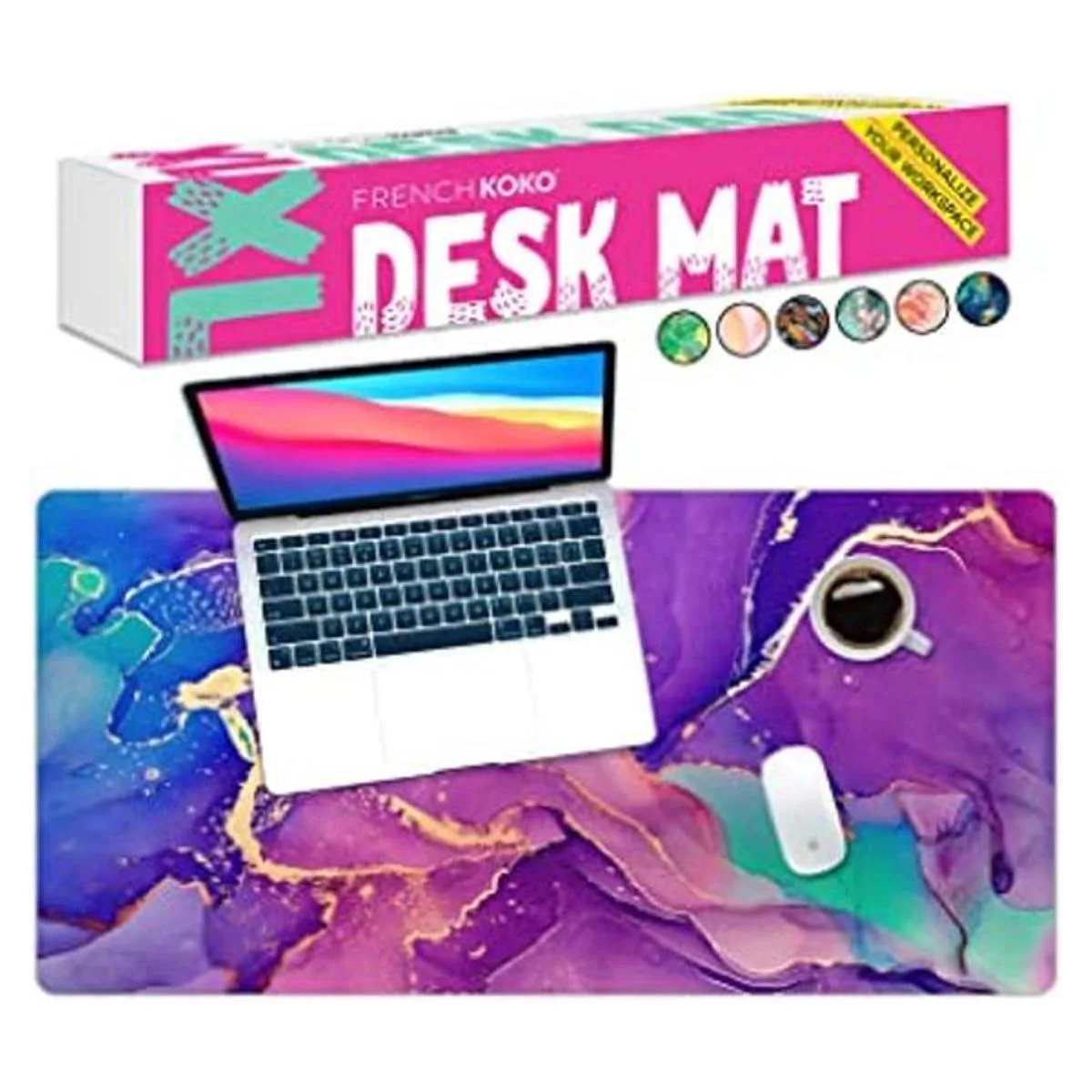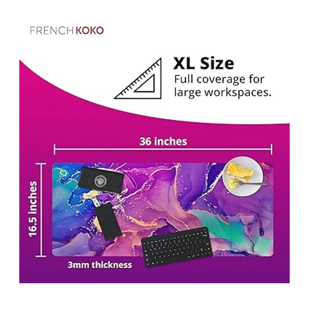 French Koko Alfombrilla de mouse grande para escritorio, escritorio, oficina, escuela, decoración grande, protector extendido, accesorios para computadora, bonita alfombrilla de mouse para mujeres y niñas, mármol morado, XL, 36 x 16.5 pulgadas