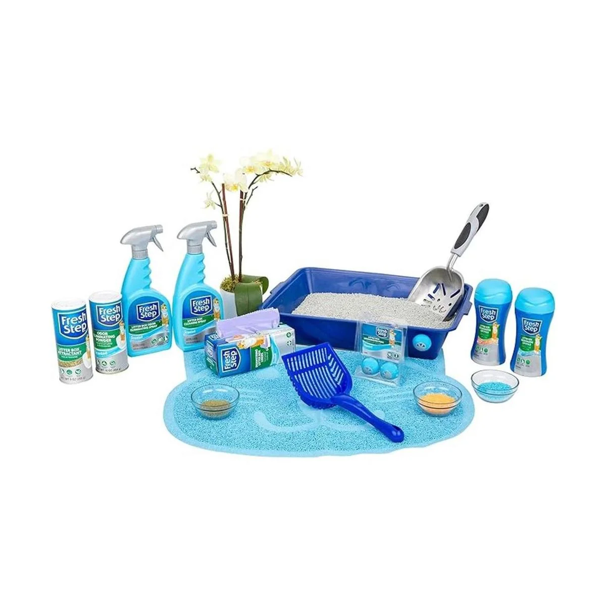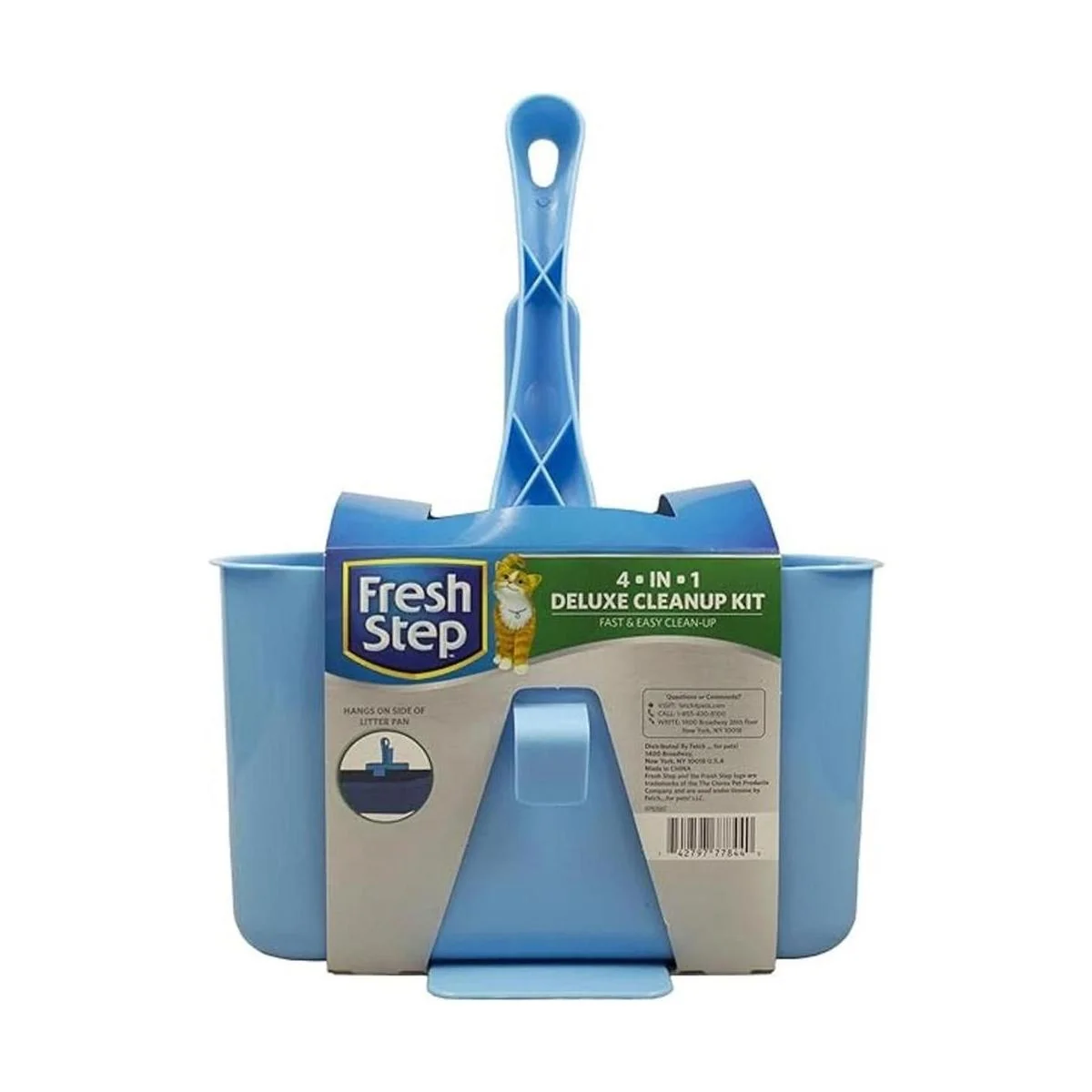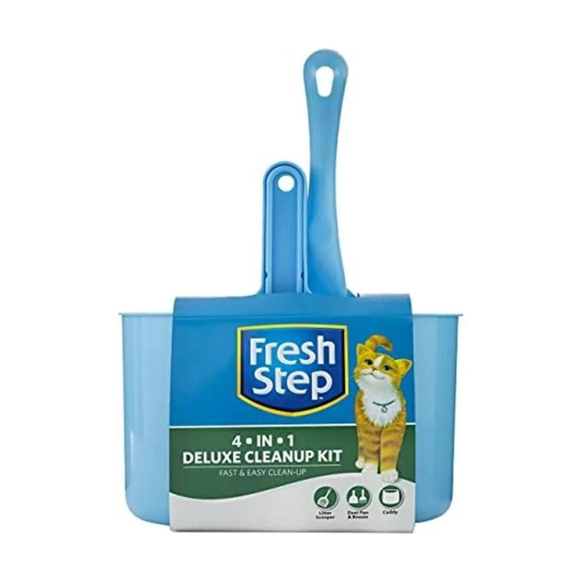 Todo lo que necesitas en un solo lugar: el kit de limpieza de lujo Fresh Step 4 en 1 incluye un recogedor de excrementos, recogedor, escoba y caddy, todos los suministros para gatos que necesitas para mantener tu caja de arena fresca y limpia; todos los suministros de limpieza para gatos en un práctico paquete