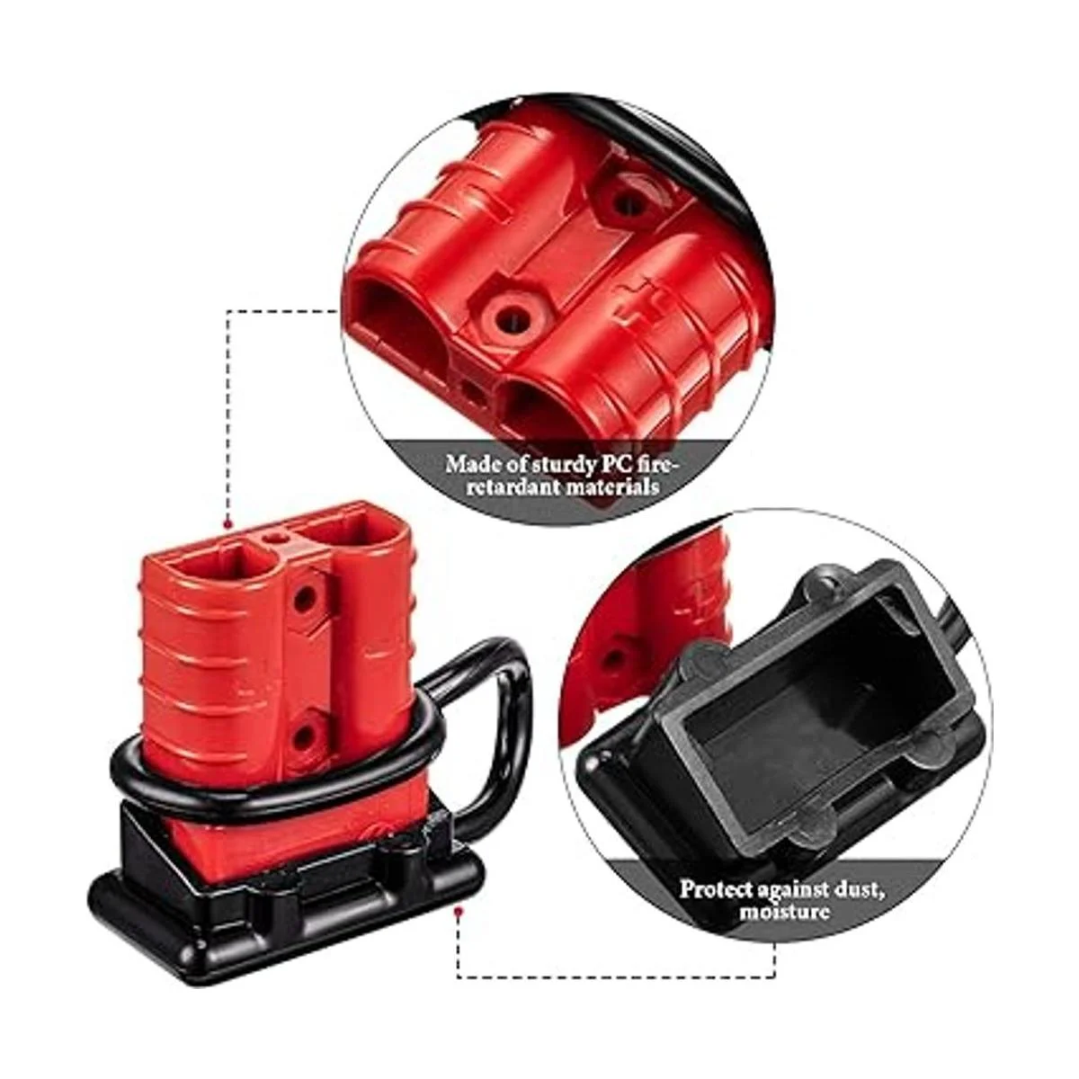 Material de calidad y duradero: el enchufe de conector rápido de la batería está hecho de material resistente ignífugo de policarbonato con cubiertas de goma ajustadas para proteger contra el polvo, la humedad, tiene un largo tiempo de servicio