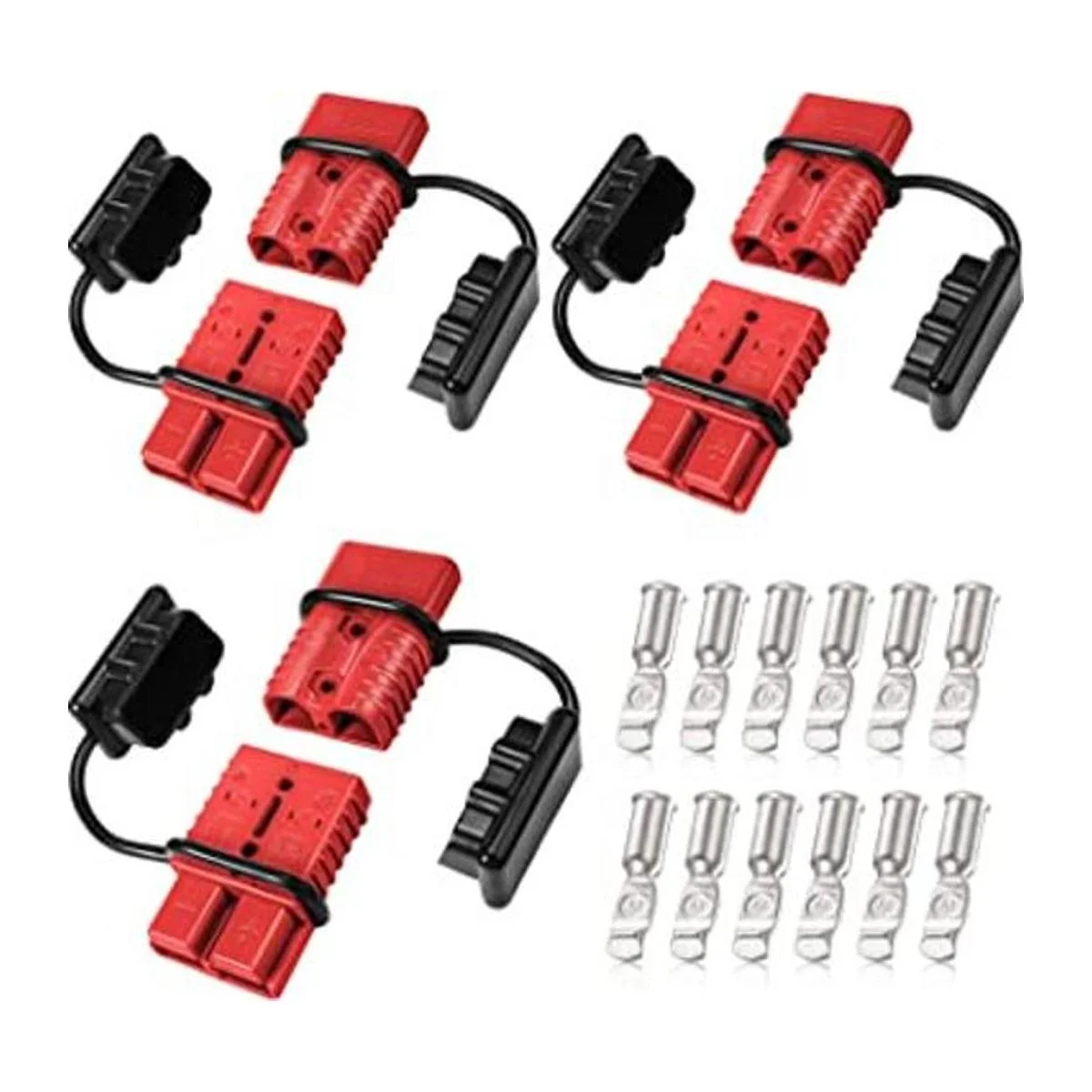 Información de tamaño: voltaje: 1236 voltios CC. Capacidad: 50 amperios. El paquete viene con 6 juegos de conectores rápidos de batería de calibre 24, incluyendo 6 conectores, 12 pines de terminal, 6 tapas, cantidad suficiente para satisfacer tus diferentes necesidades o reemplazo