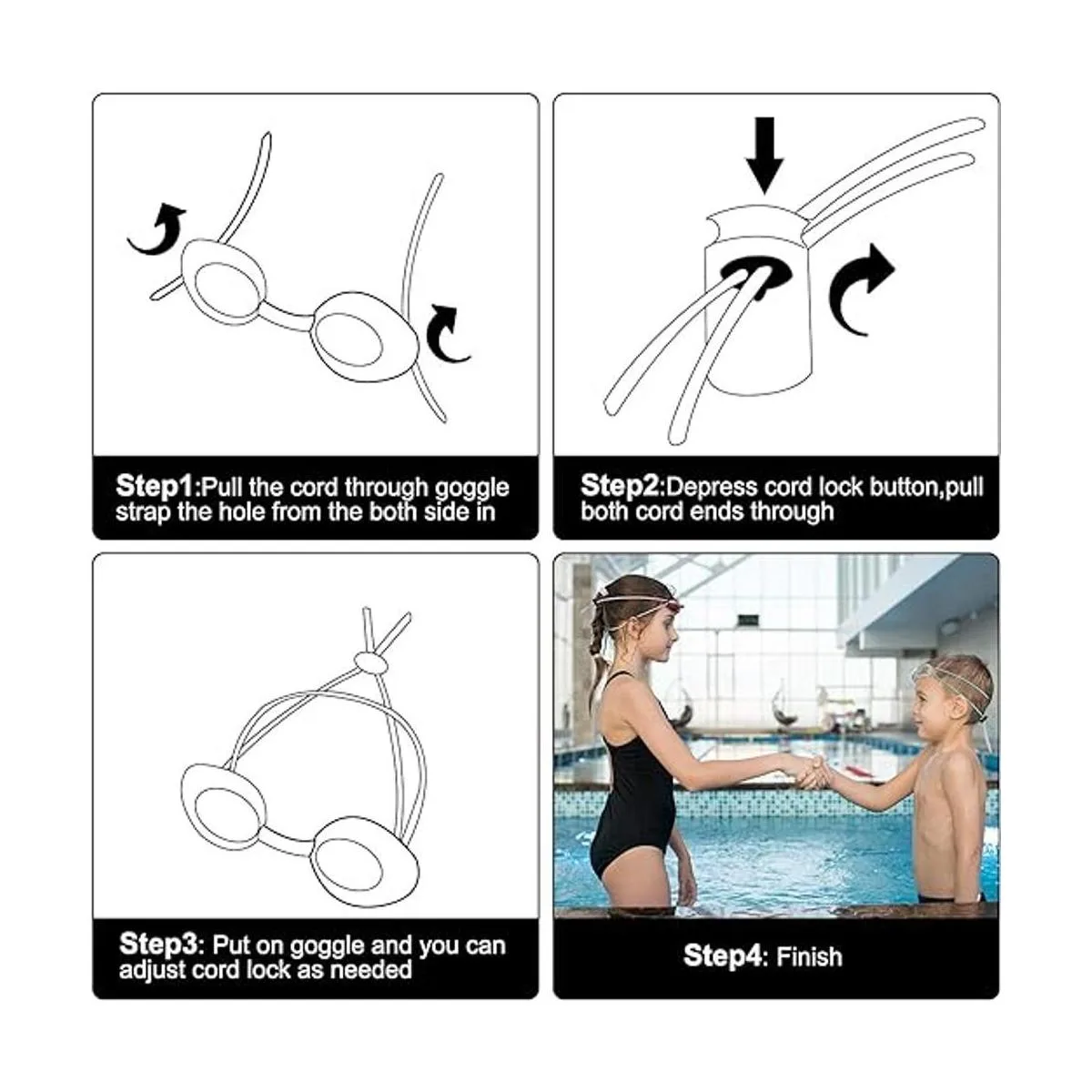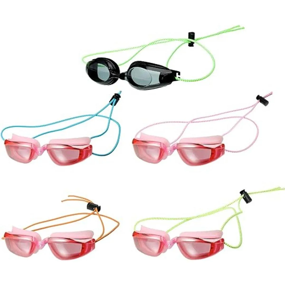 Diseño ajustable: cada correa de gafas de natación viene con una abrazadera de cierre de cordón, que puede ayudarte a ajustar tus gafas de natación, no te hará sentir apretado, puedes ajustarlas a un tamaño adecuado de acuerdo a tus necesidades reales, conveniente para usarlo.