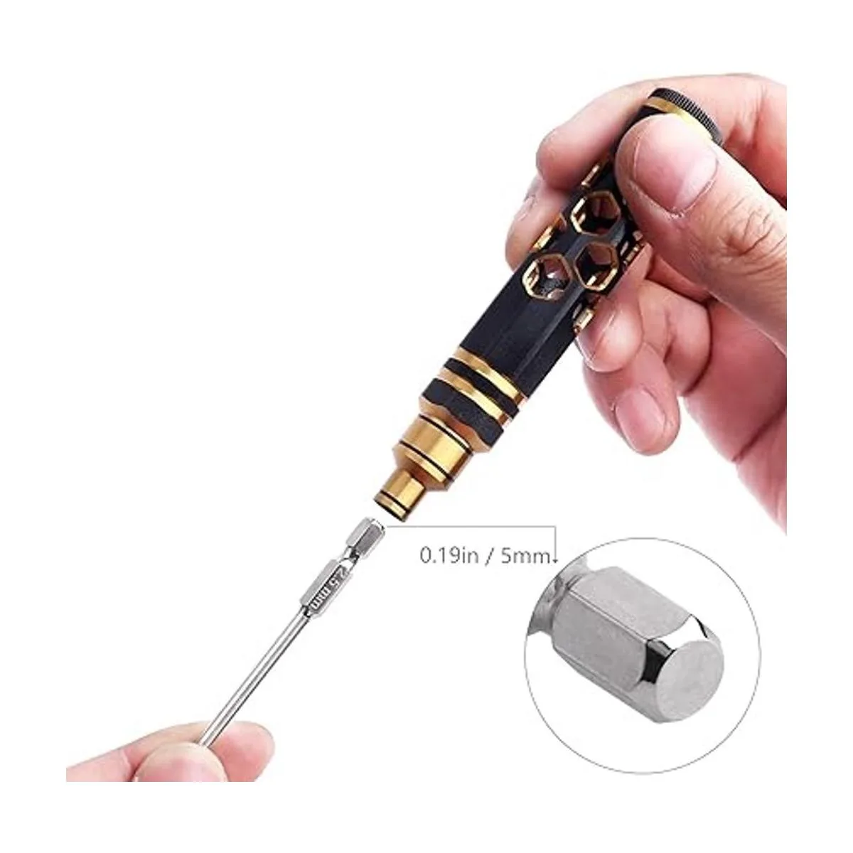 FriHobby Juego de destornilladores RC 5 en 1, llave de rueda de 0.669 in, llave hexagonal pequeña cruzada kit de herramientas RC para auto a control remoto, camión sobre orugas multiejes, FPV, dron de carreras RC cuadricóptero