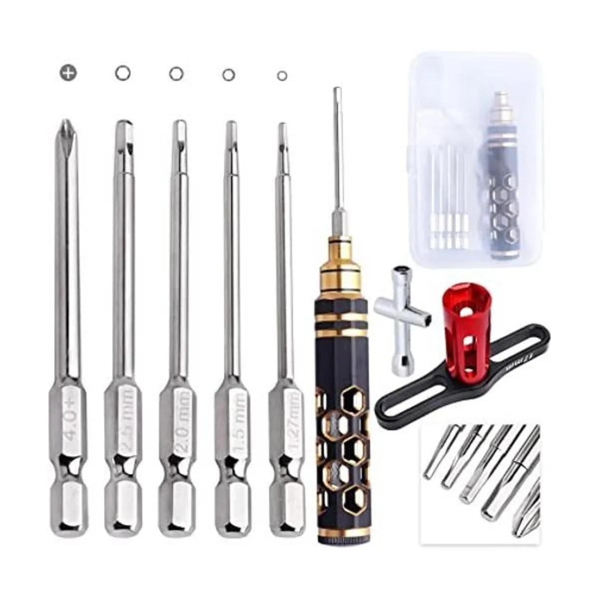 Kit de herramientas RC de gran valor, recibirás un juego de destornilladores 5 en 1, llave hexagonal de 0.669 in, llave hexagonal de 4 vías de cruz pequeña, ideal para modelos RC