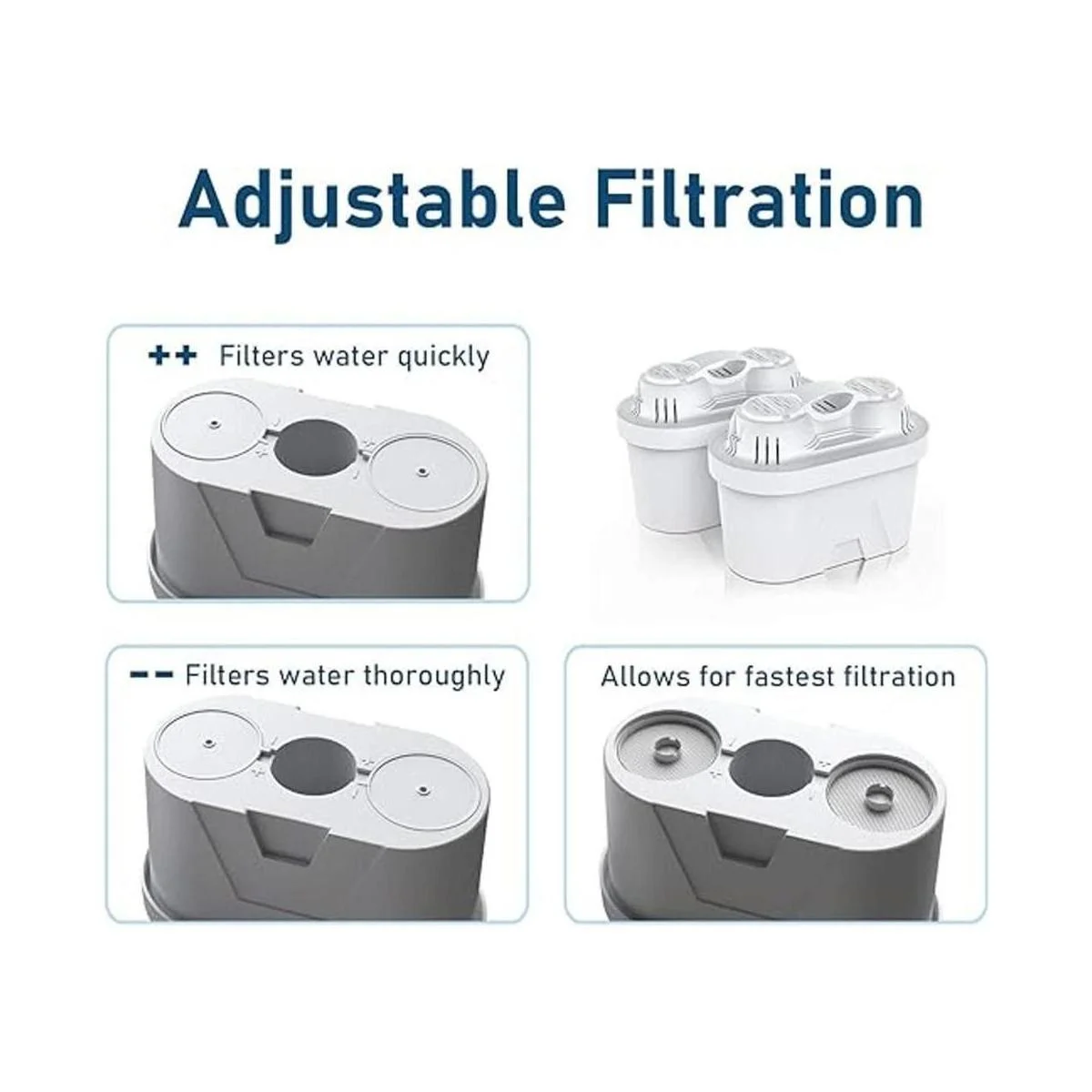 Tasa de flujo ajustable: el filtro de repuesto tiene un diseño único de velocidad de filtración ajustable. Cada cartucho de filtro tiene un regulador en la parte inferior. Gira el dial de a para disminuir la tasa de filtración para que el agua se filtre más a fondo y viceversa. Depende de si tienes mucho tiempo para esperar una carga de agua purificada más decente. Retira completamente las tapas del restrictor para una filtración más rápida.