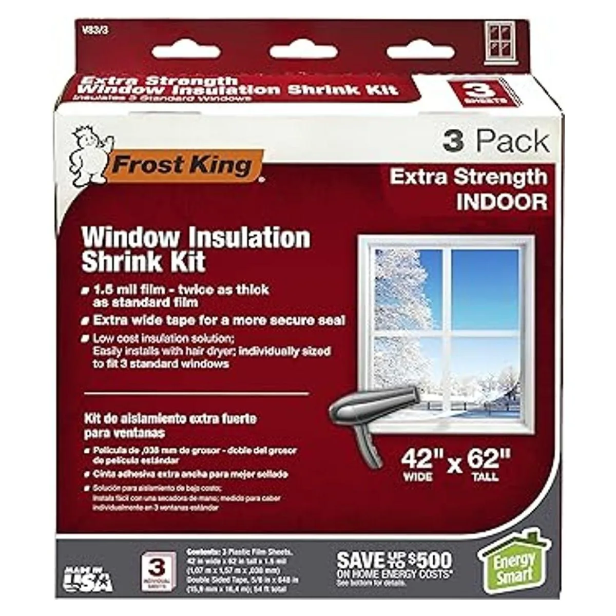 Frost King Kit de aislamiento de ventana retráctil resistente para ventana, 42 pulgadas62 pulgadas paquete de 3