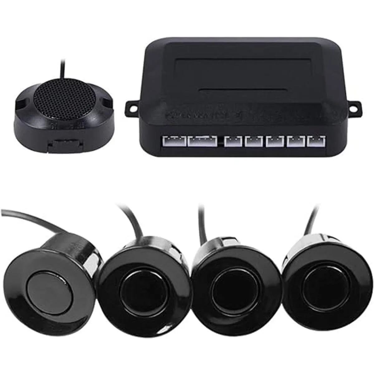 Frostory Sistema de radar de sensor de estacionamiento de respaldo inverso para automóvil, pitidos de zumbador, distancia de detección 30 59.1 in, sensores impermeables cable de 0.866 in de diámetro de 2.3 M 4 paquetes X60D negro