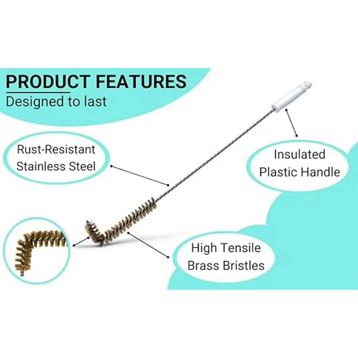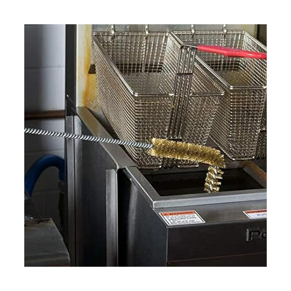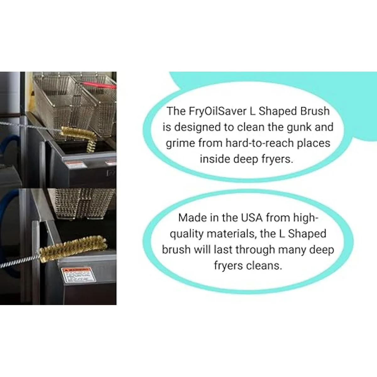 FryOilSaver Co, B53C, cepillo de limpieza para freidora en forma de L, limpiador de bobinas de freidora de alta temperatura, mango largo, cerdas de metal, bueno hasta 750F