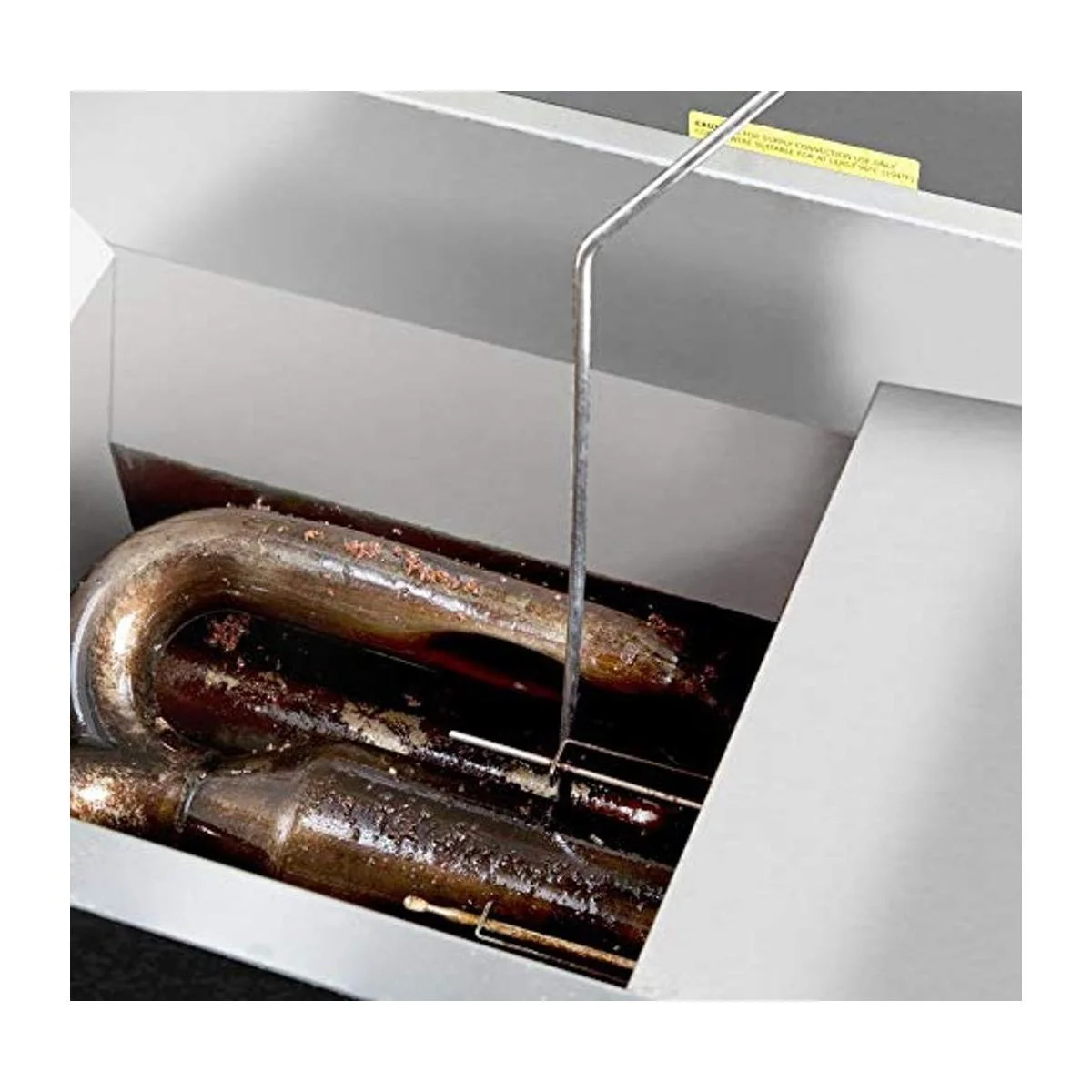 La barra de limpieza de freidora de 25 pulgadas se utiliza para romper el aceite endurecido. La mejor herramienta para limpiar el drenaje de la freidora obstruido. Coloca el extremo recto en la línea de drenaje para romper el aceite endurecido. Hecho de acero galvanizado. Imprescindible para una freidora de alta temperatura. Se mantiene bien contra el calor. Longitud total: 31 pulgadas, la primera curva es de 10 pulgadas desde el mango; la segunda curva es de 11 pulgadas desde la primera curva y 10 pulgadas desde el extremo.