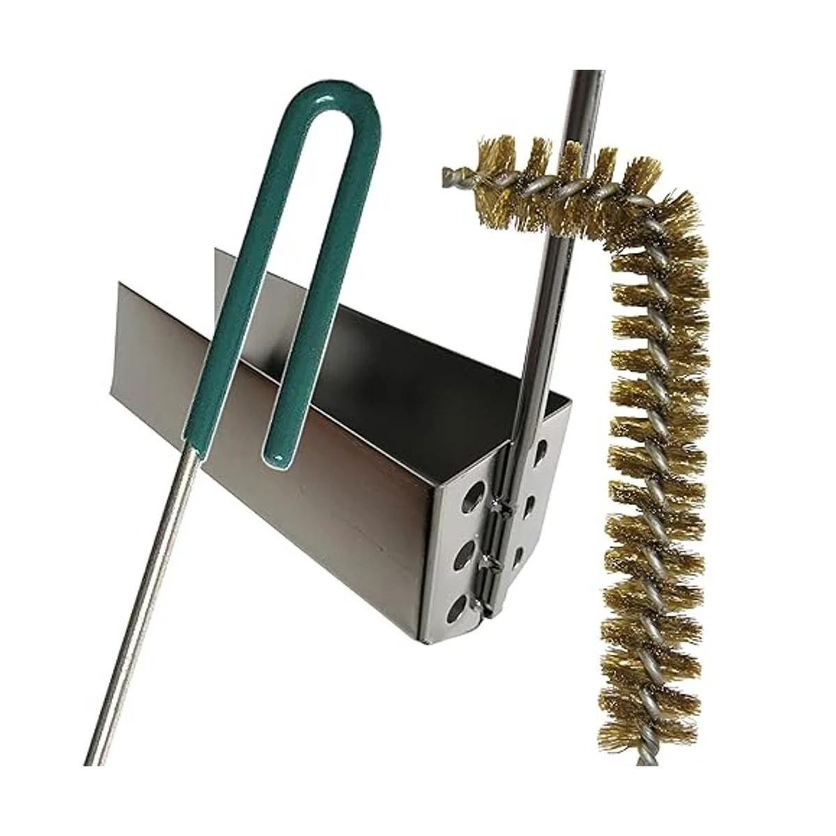Cepillo de cerdas de alta temperatura para freidora profunda. Puede soportar temperaturas de 500 F. Elimina la necesidad de esperar a que el equipo se enfríe antes de limpiar. La forma L limpia superficies difíciles de alcanzar. salo para limpiar tubos de quemador en tu freidora. El mango se mantiene fresco al tacto