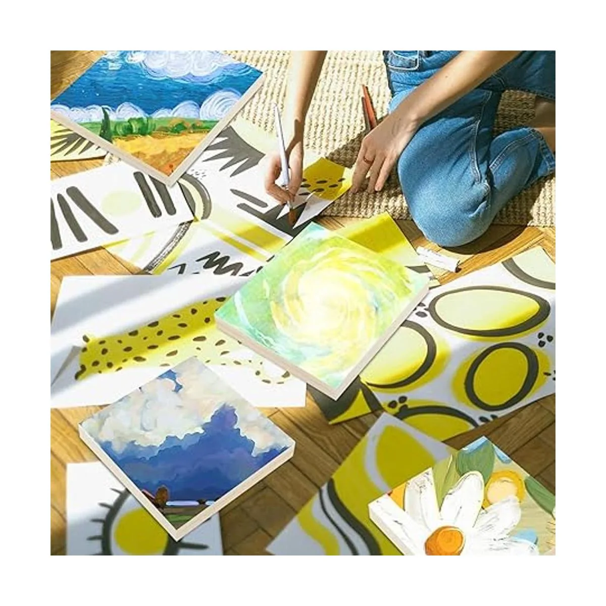FSWCCK 10 tableros de madera de 6 x 6 pulgadas, lona de madera sin terminar para manualidades, lienzo de pintura, proyectos de arte de bricolaje, vertido, uso artístico con aceites, acrílicos