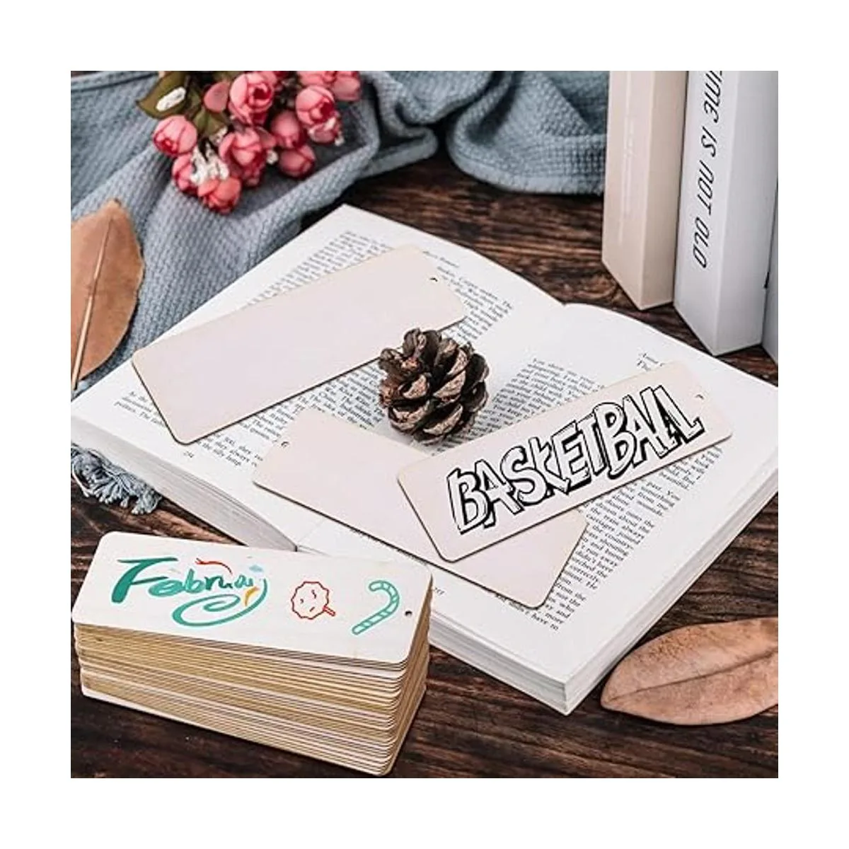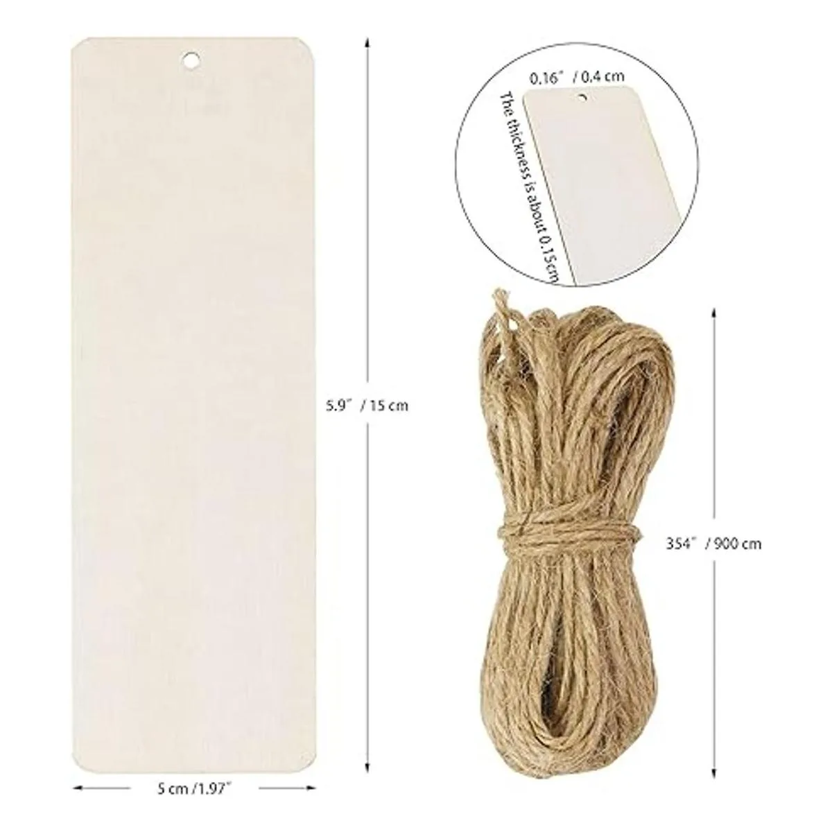 El tamaño de cada marcapáginas de madera en blanco es de 6 x 2 pulgadas, y el tamaño de la cuerda es de 354 pulgadas, son adecuados en tamaño y fáciles de colgar.