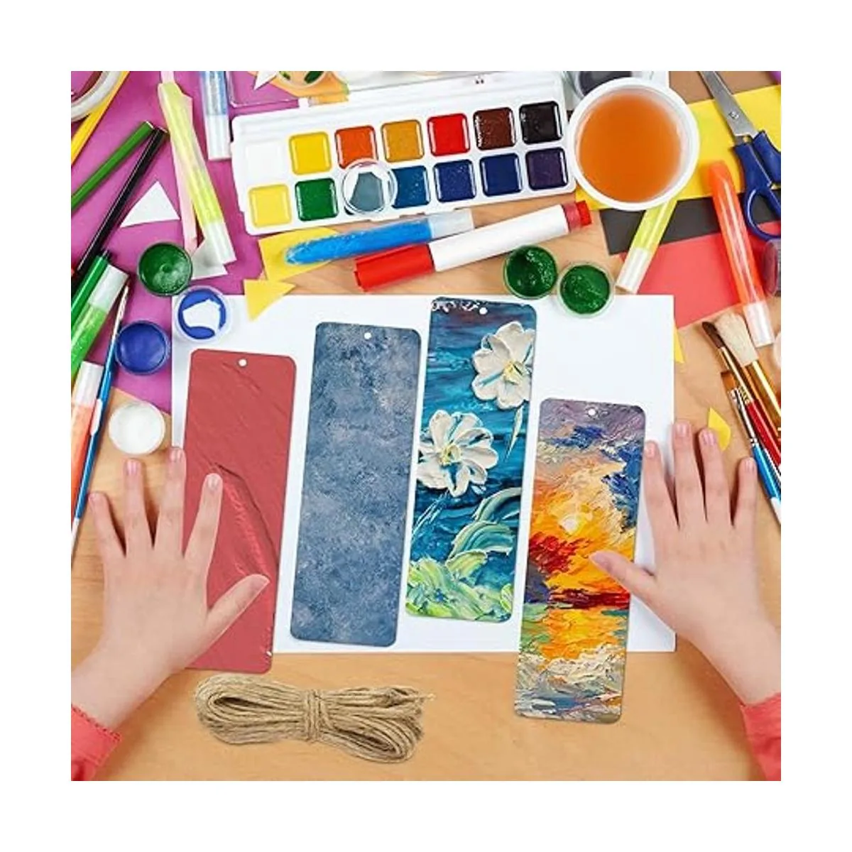 El paquete incluye 50 marcapáginas de madera en blanco y una cuerda larga, utilizarlos juntos puede ayudarte a hacer hermosos marcadores o decoraciones exquisitas.