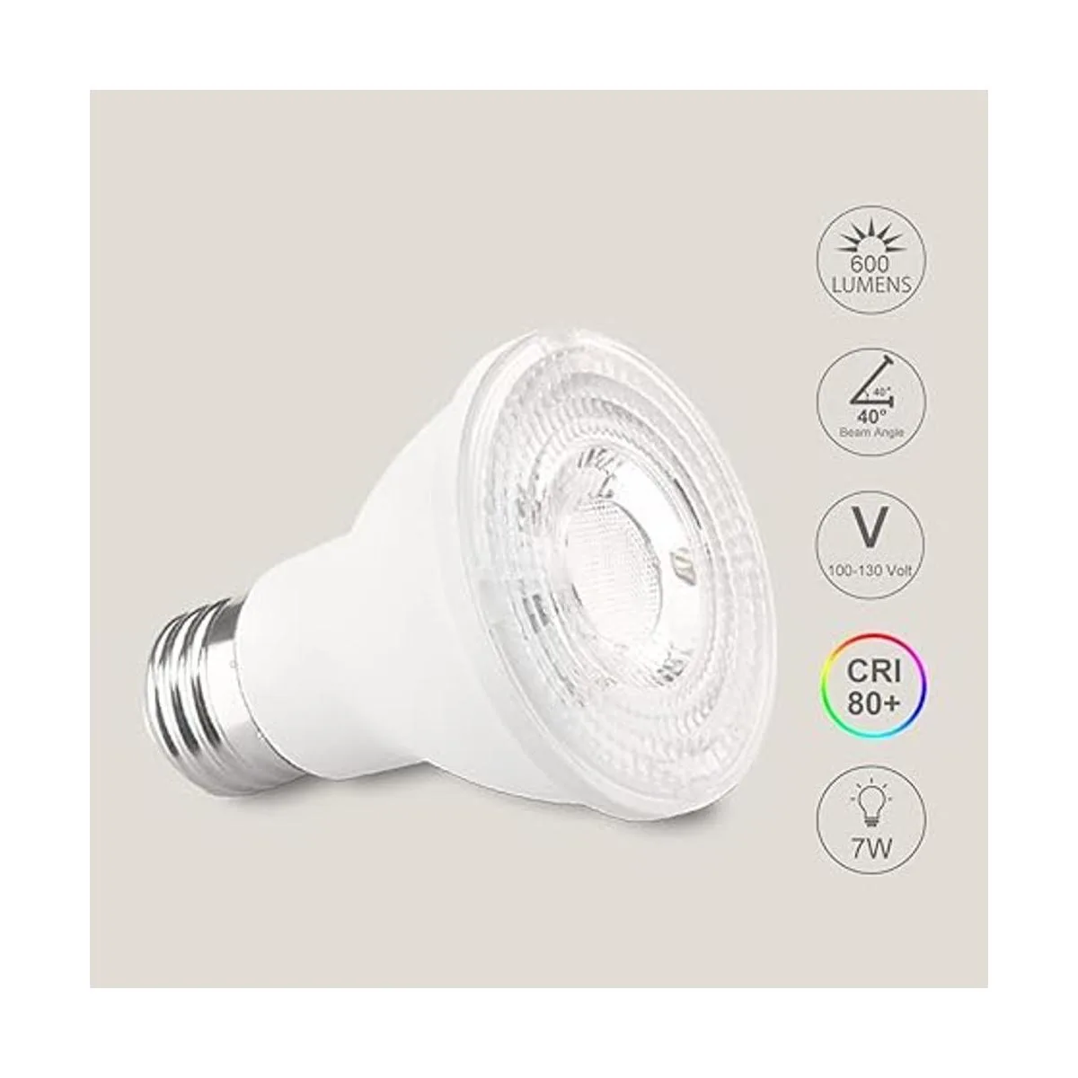 FTL PAR20 Bombillas LED de 5000 K, luz diurna blanca, 7 W, 600 lúmenes, 50 W, 60 W, luz puntual regulable, base E26, bombilla de inundación interior y exterior para iluminación empotrada, paquete de 6