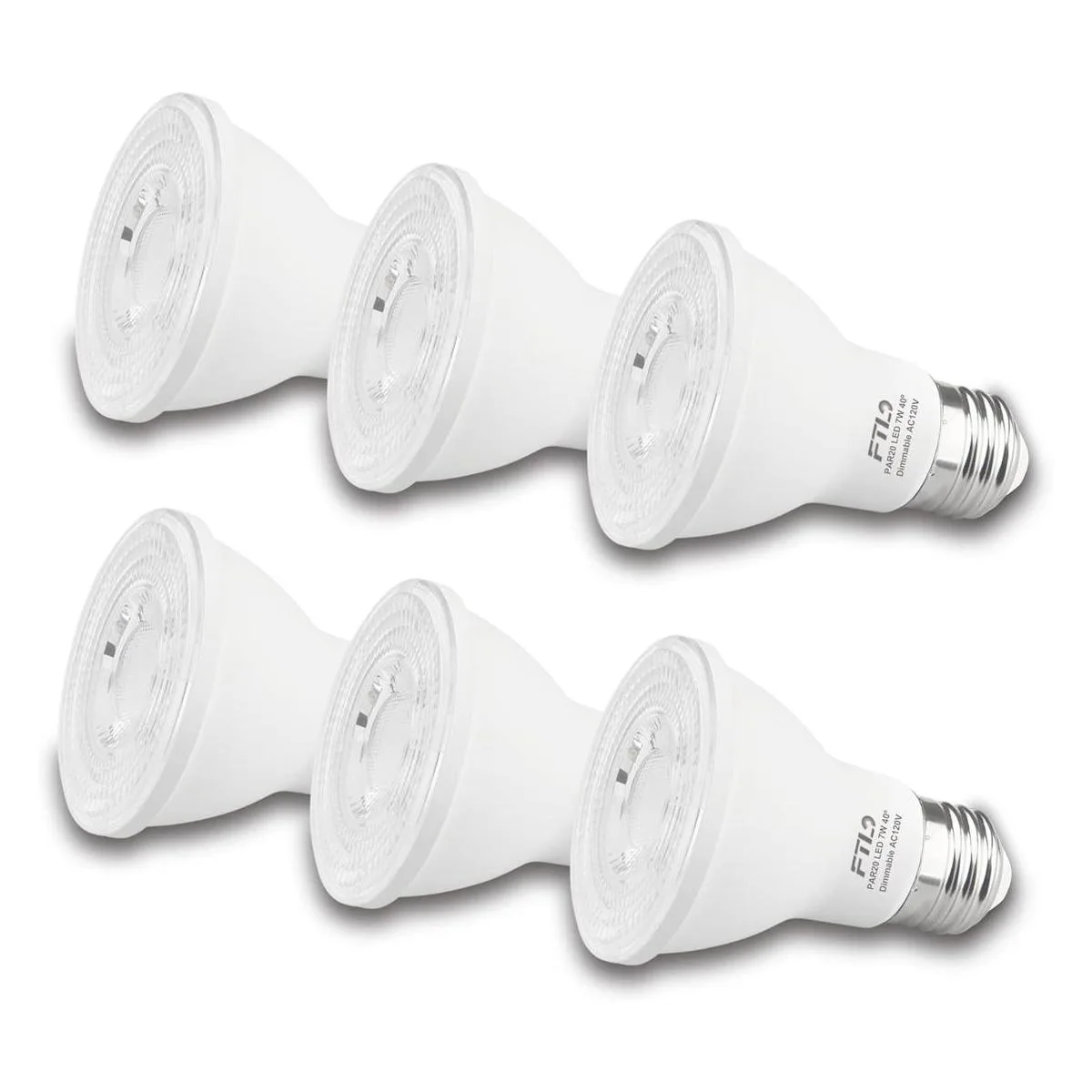 Ahorro de energía: bombillas LED Par20 regulables FTL de 7 W 5000 K luz blanca diurna, equivalente a la bombilla halógena tradicional Par20 de 50 W y 60 W, puede ahorrar un 90 en tu factura de electricidad.