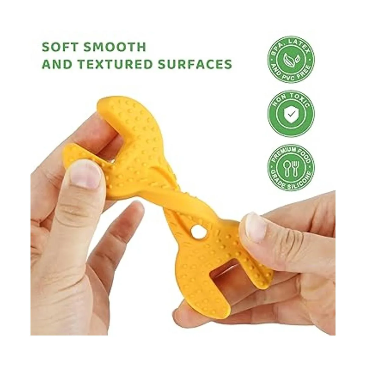 Material seguro: 100 silicona de grado alimenticio, no tóxico, sin BPA. El material suave y flexible disminuye el riesgo de lesiones en la boca, es completamente seguro para los niños.