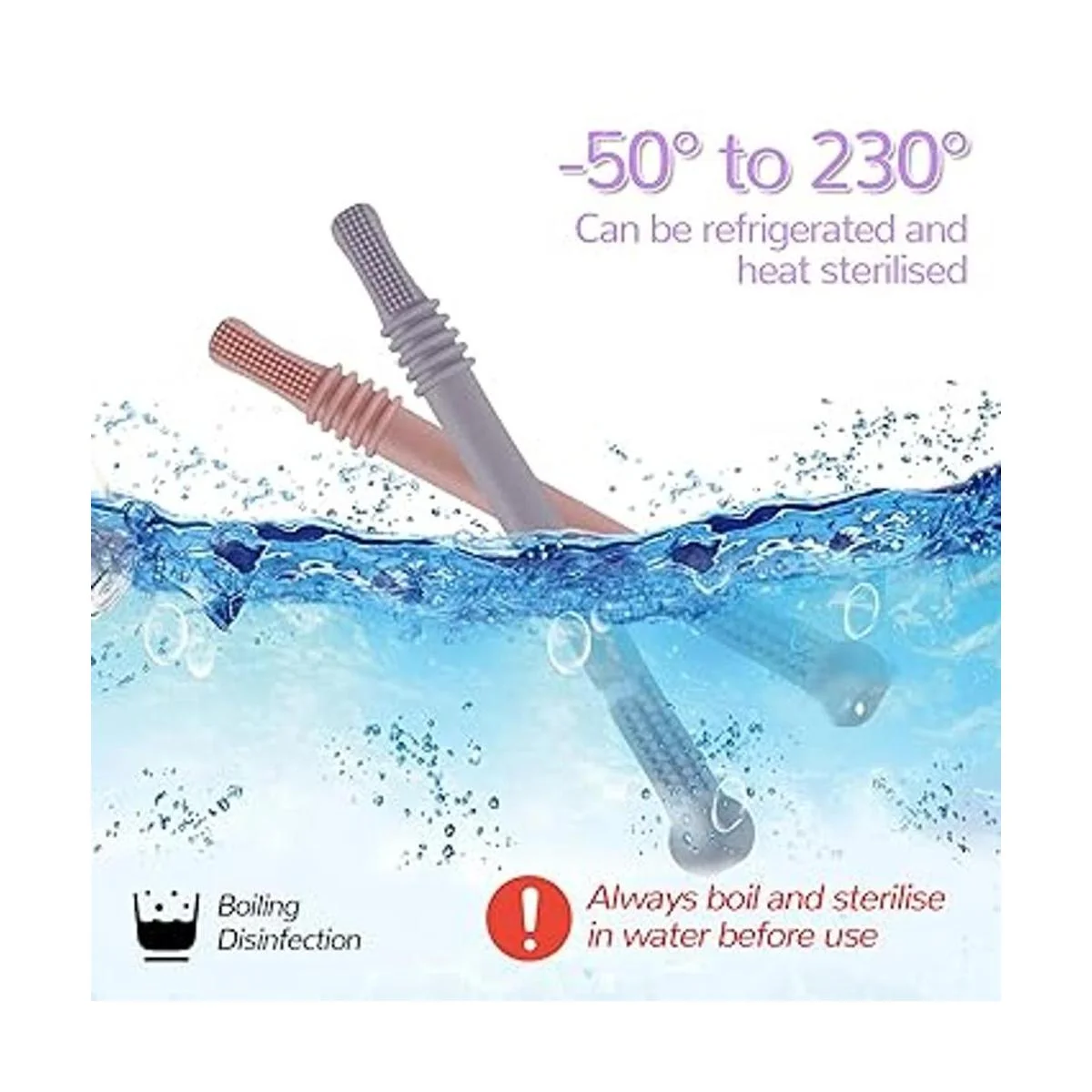 Tamaño y peso perfectos: estas pajitas de dentición para bebés son ligeras y pequeñas, son fáciles de sostener y masticar para las manos pequeñas.